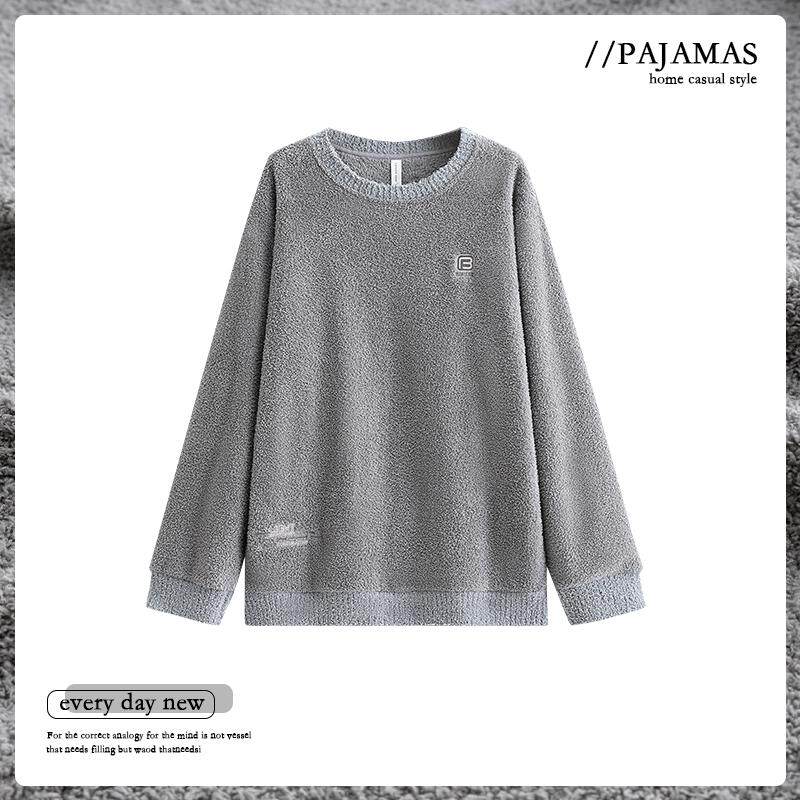 📚 猫人2024年新款珊瑚绒男款单件上衣套头秋冬季加厚半边绒男可外穿