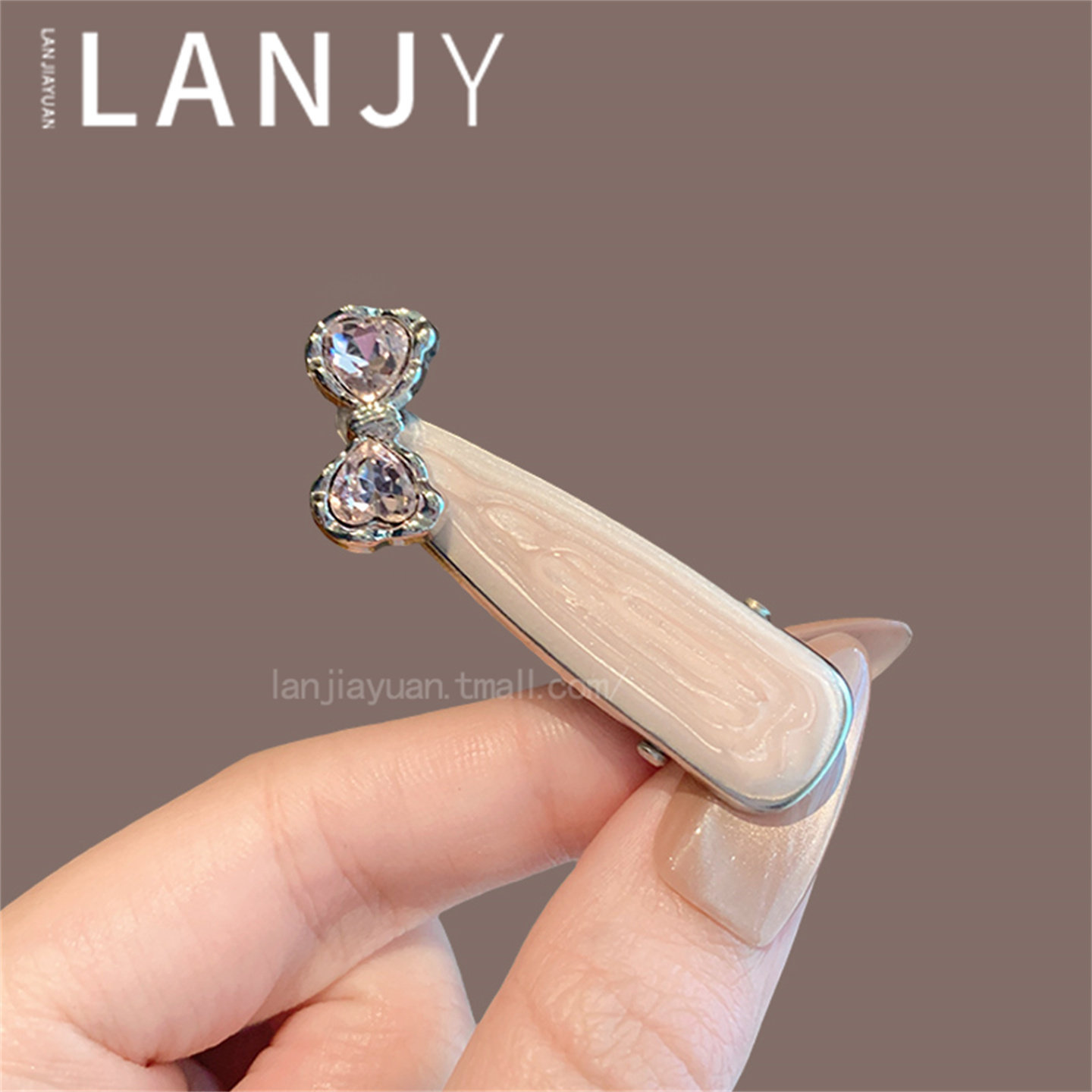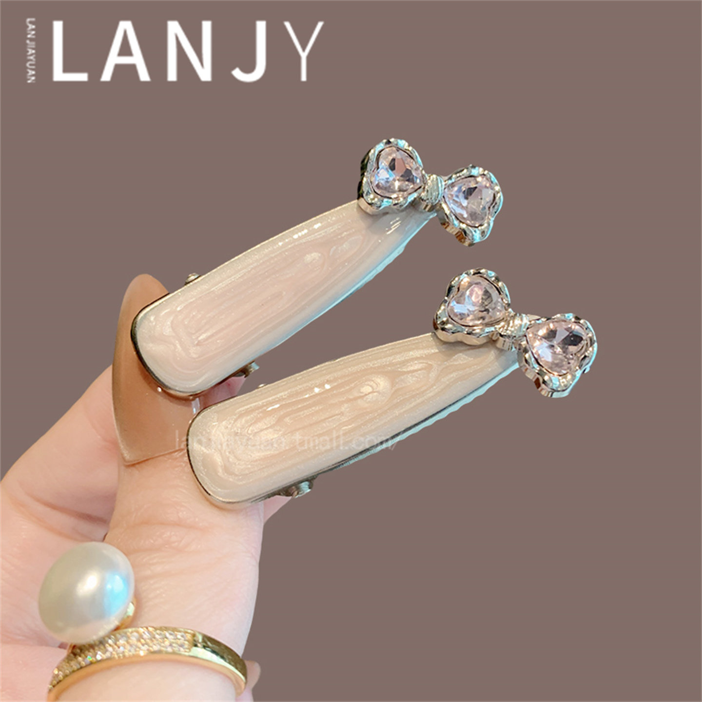 📚 韩国重工粉色滴釉发夹精致超闪蝴蝶结水钻侧边夹气质甜美刘海夹女