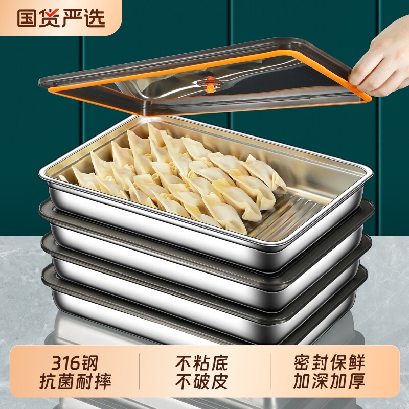 📚 不锈钢饺子盒冰箱用冷冻盒水饺云吞混沌备菜盘冰箱保鲜盒收纳盒子