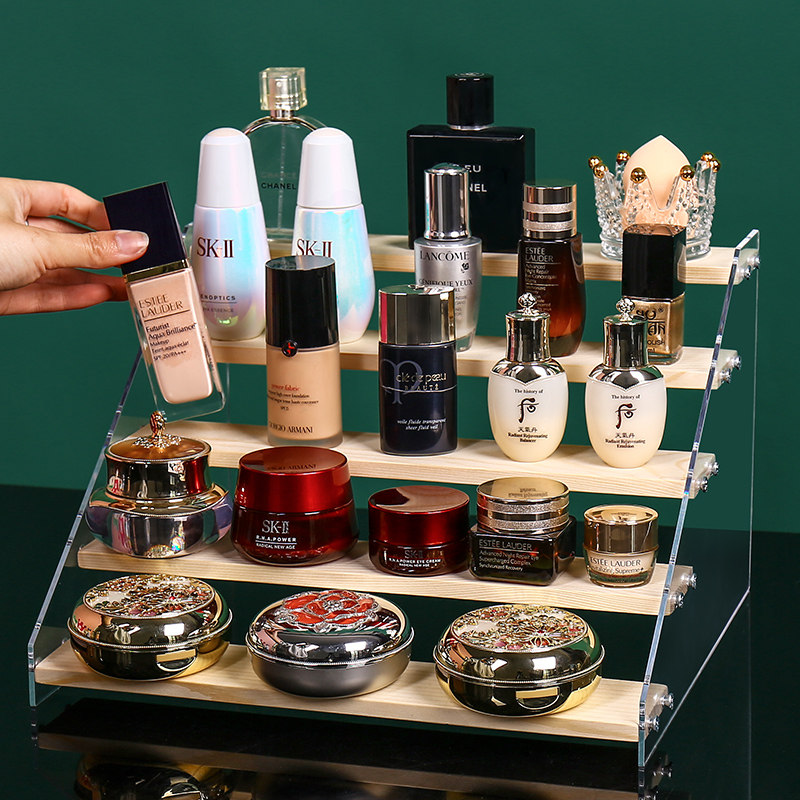 📚 盲盒收纳展示架梯形手办陈列架木质阶梯式化妆品香水指甲油置物架