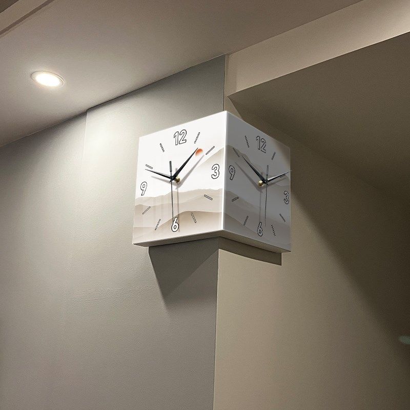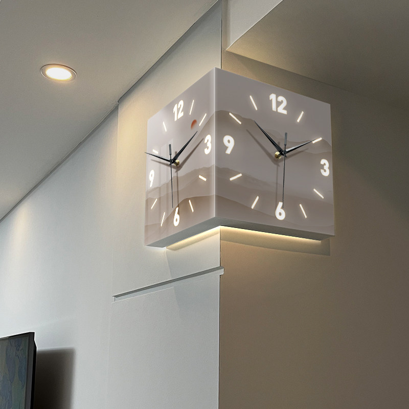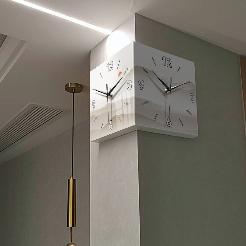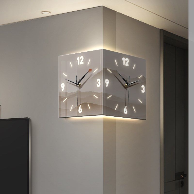 📚 免打孔客厅钟表挂钟发光创意转角时钟壁灯画拐角钟挂墙壁钟画