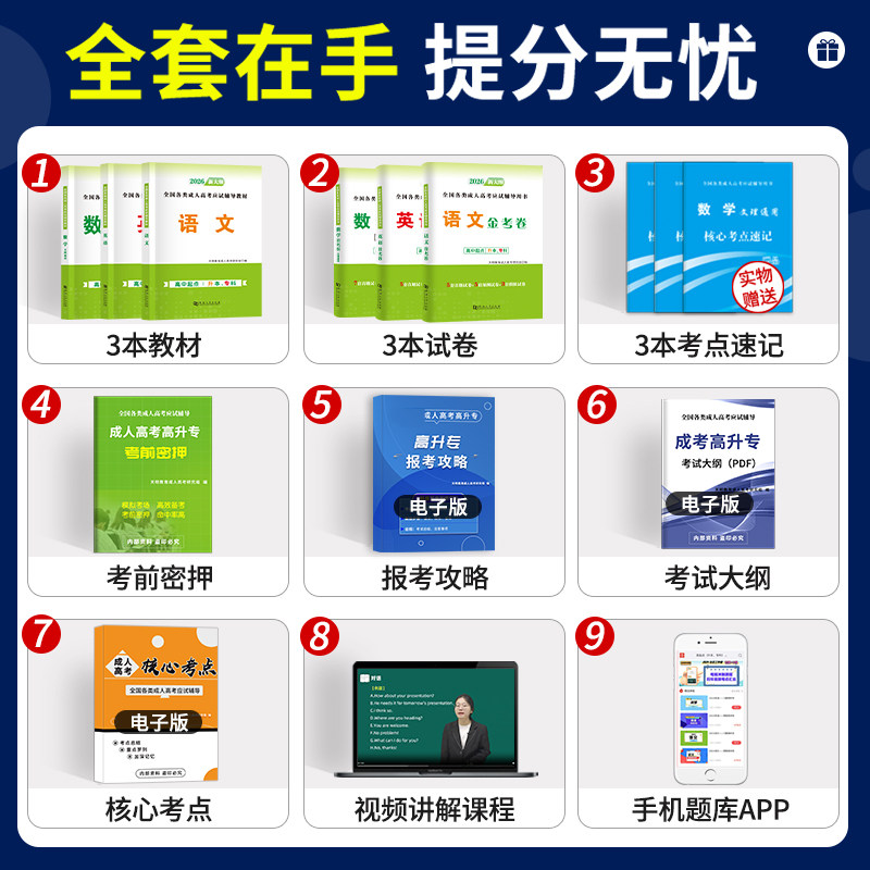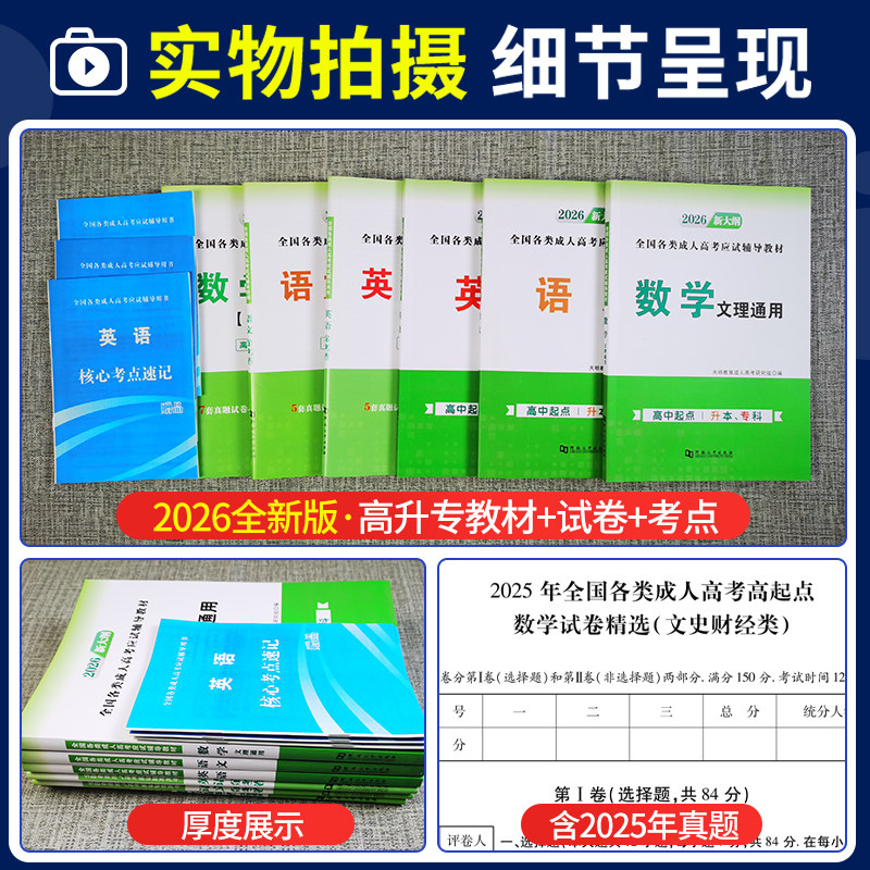 📚 2026成人高考高升专教材历年真题试卷语文数学英语全套高中起点自考升专科本科大专学历文理科考试课本复习资料用书天明教育高升专