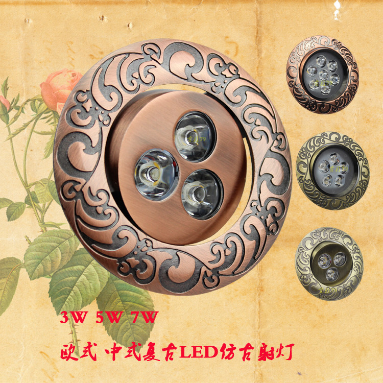 📚 LED仿古射灯3w祥云红古铜青古铜色复古典中式射灯欧式美式天花灯
