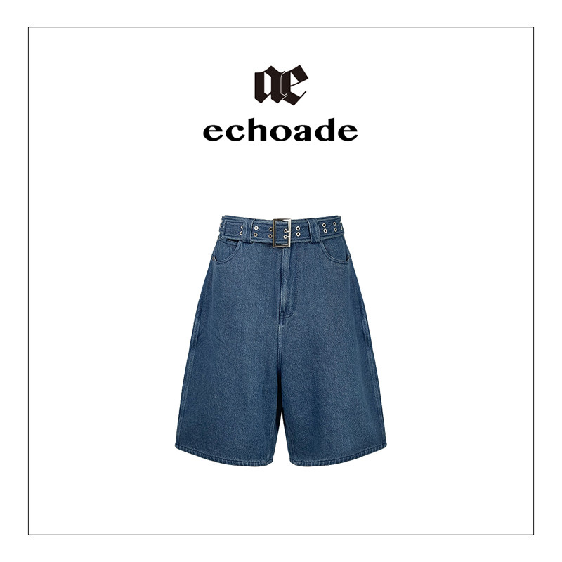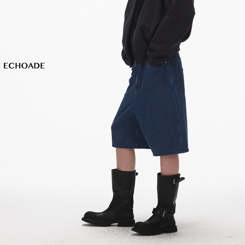 📚 ECHOADE复古时髦 环保水洗中低腰设计直筒宽松阔腿牛仔短裤