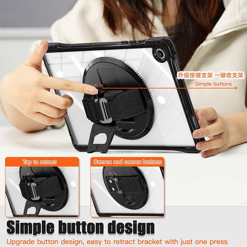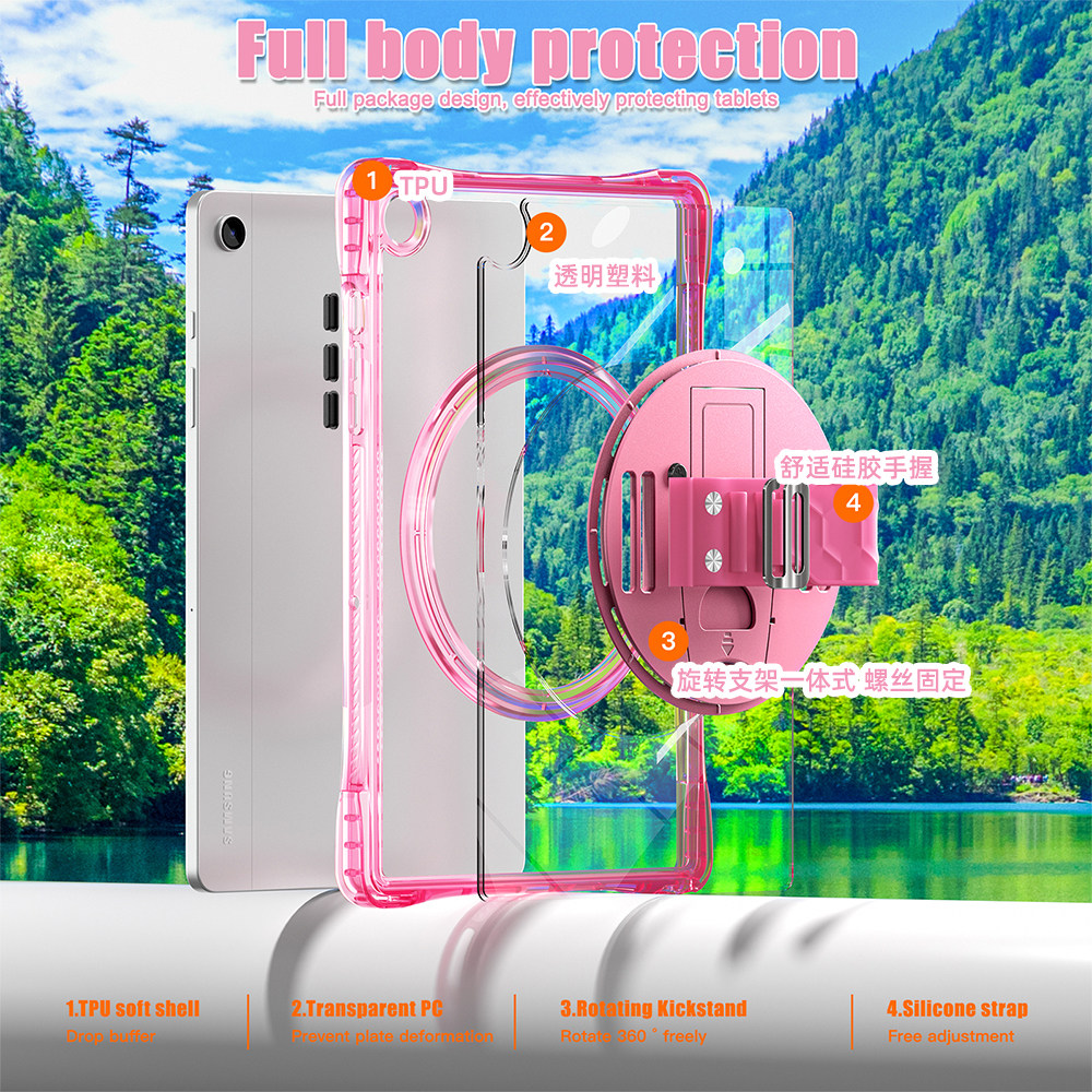 📚 轻薄透明适用三星平板a9+保护套Samsung Galaxy Tab Case SM-X216亚克力壳可旋转支架按键硅胶手握肩带可选