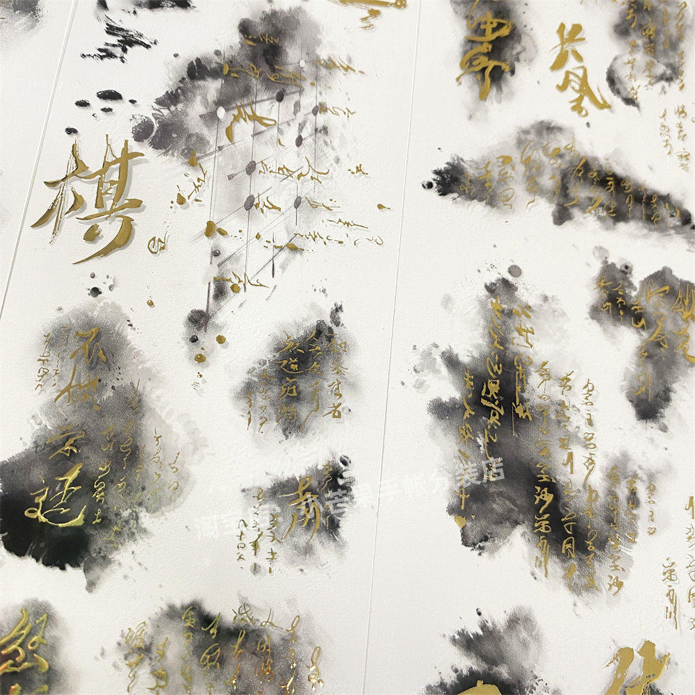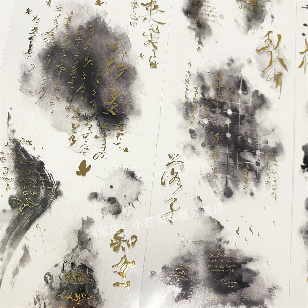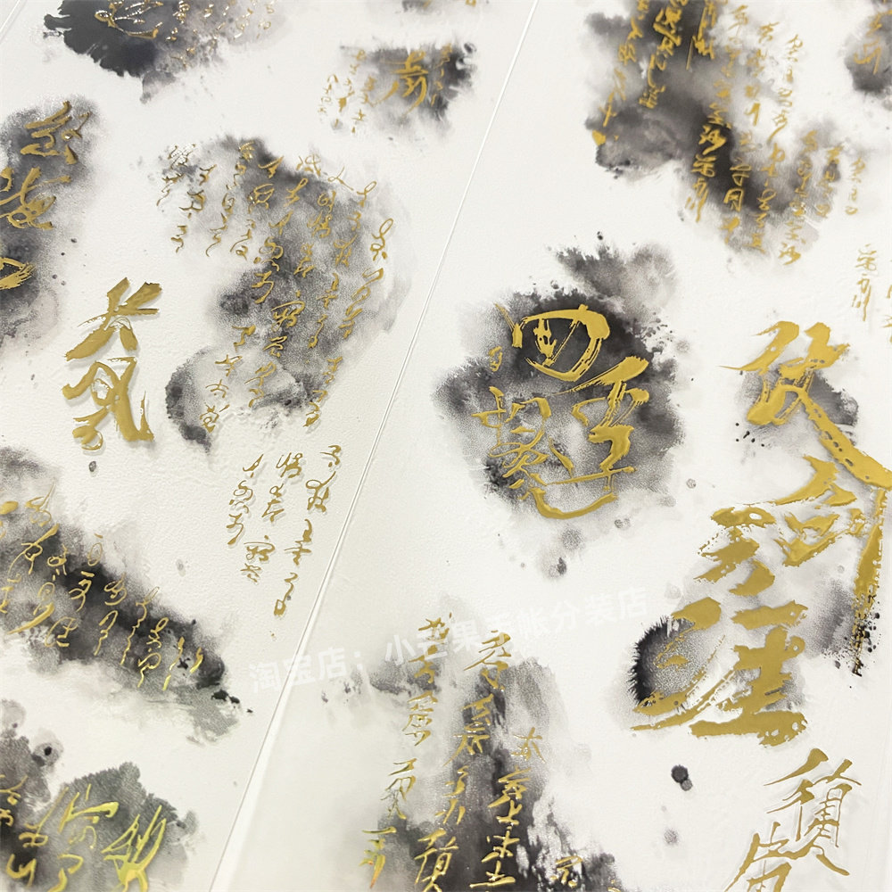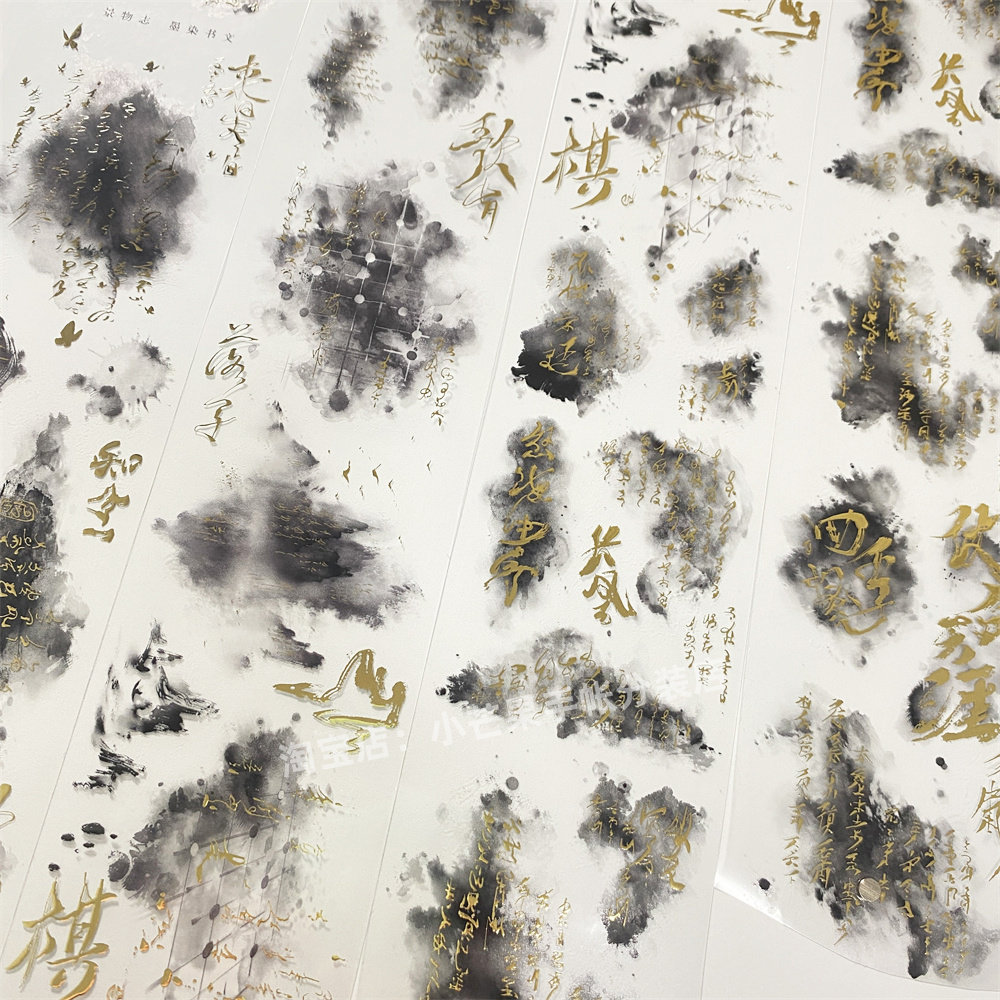 📚 手帐分装胶带墨染书文景物志烫金棋盘水墨字diy古风pet账流麻贴纸