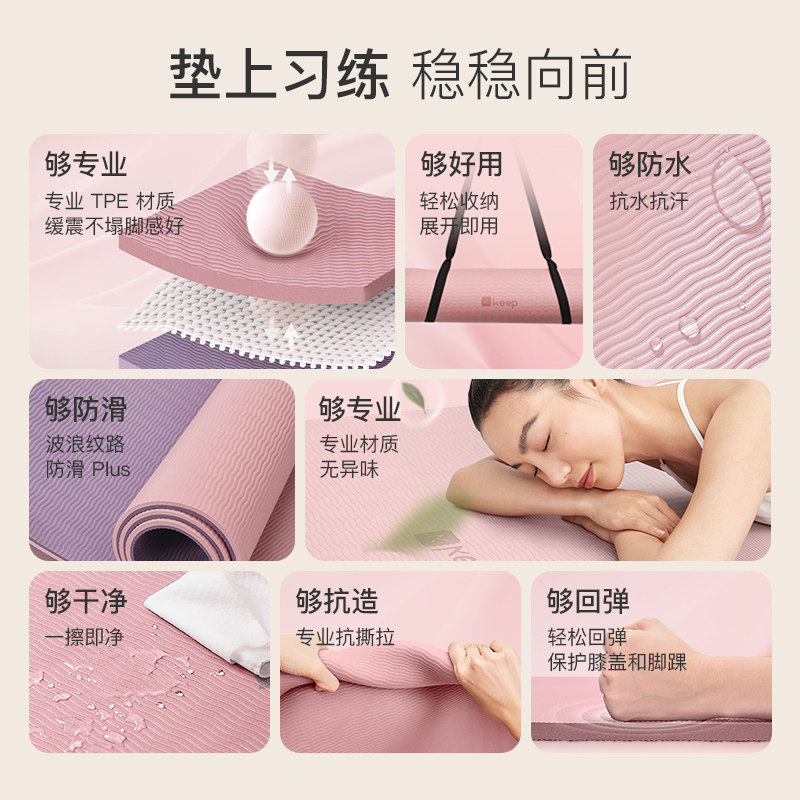 📚 Keep女生专用健身垫瑜伽垫子男防滑防震隔音双色运动家用地垫加长