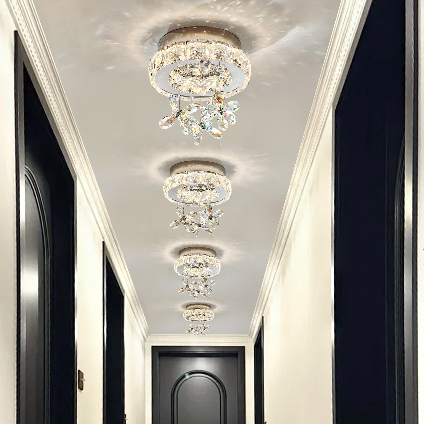 📚 法式轻奢水晶吸顶灯玄关过道走廊灯现代简约大气花朵装饰护眼灯具