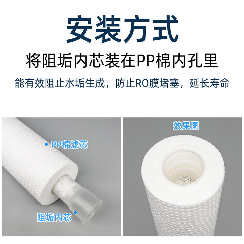 📚 FOF阻垢滤芯滤料PP棉内芯阻垢片前置式除垢净水器硬水软化去水垢