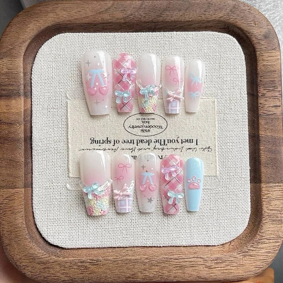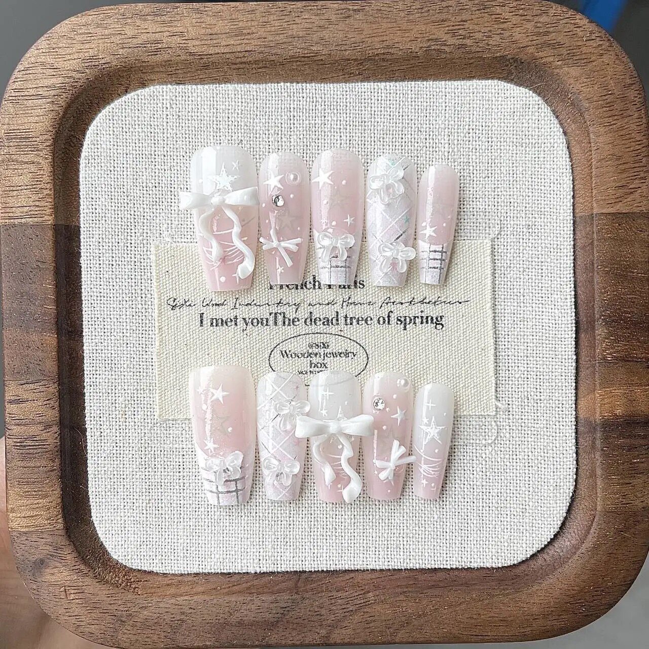 📚 手工穿戴甲蕾丝可爱学生辣妹法式暗黑星星美甲蝴蝶结显白气质美甲