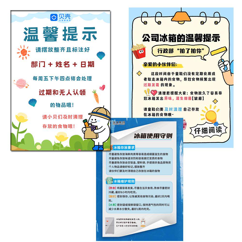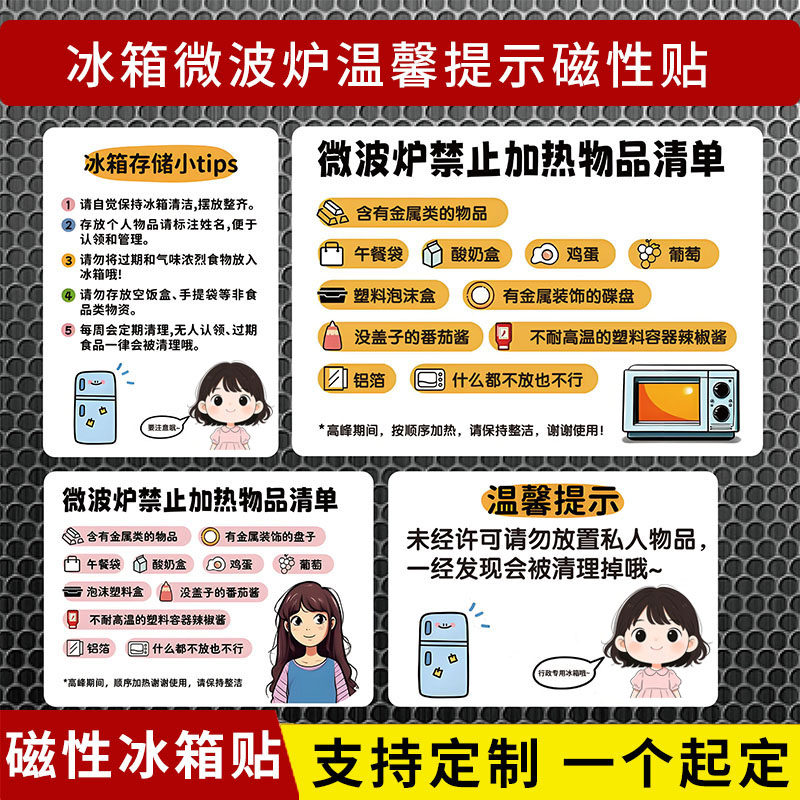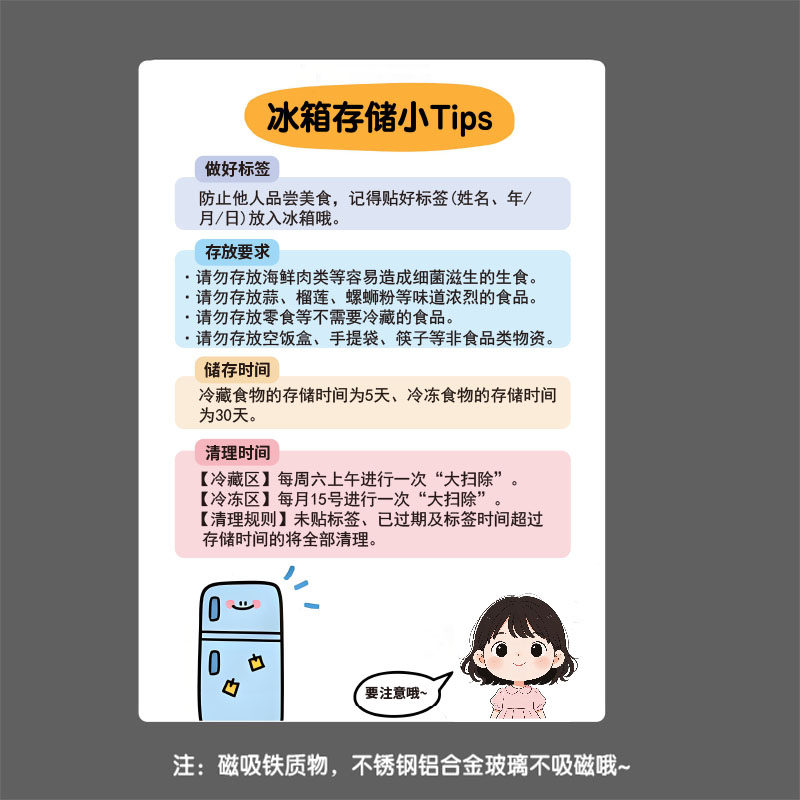 📚 冰箱使用温馨提示磁性牌冰箱储存说明标识守则公司冰箱磁性贴定做