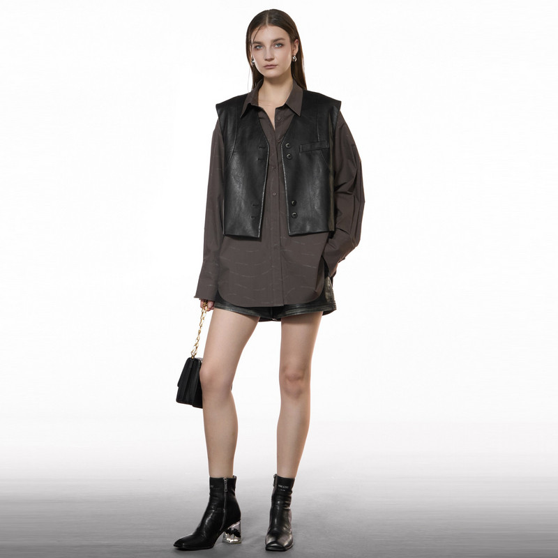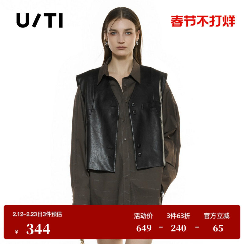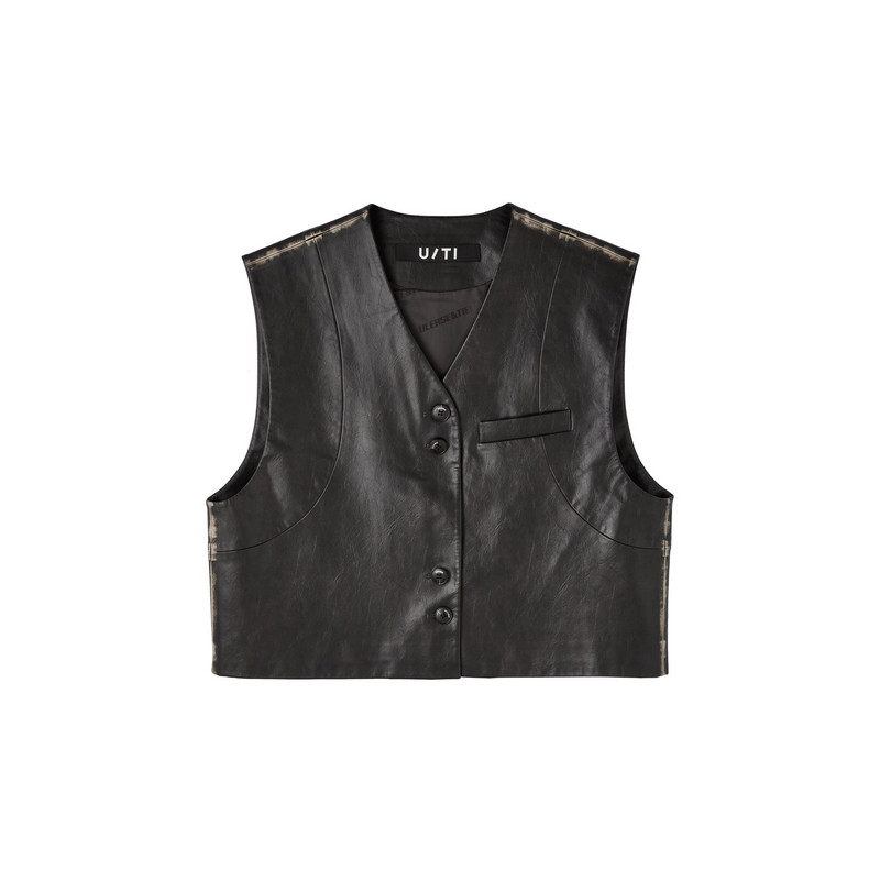 📚 U/T复古擦色皮质短款马夹女 设计感通勤休闲上衣尤缇2025秋季新款