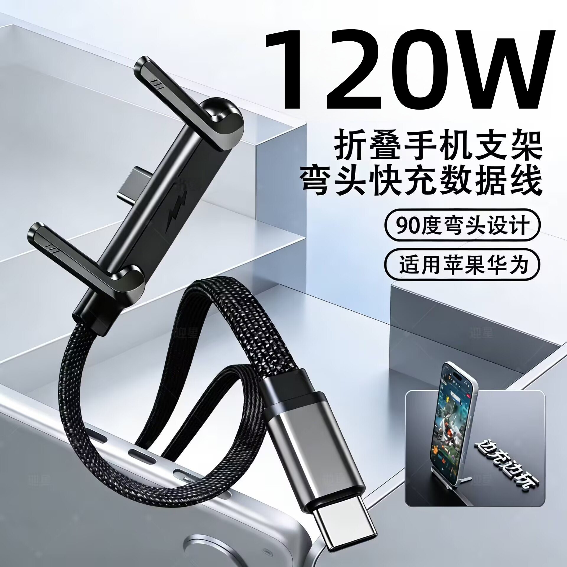 📚 YULY手机支架编织数据线双Type-c快充适用苹果iPhone17Pro充电线小米华为6A平板电脑240W车载ctoc口贴贴线