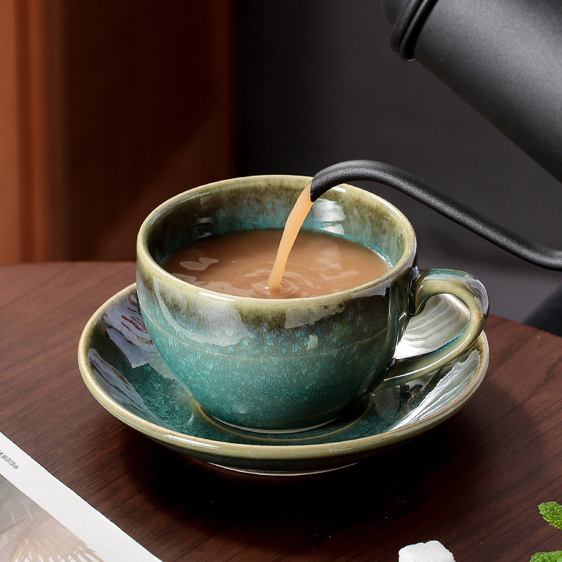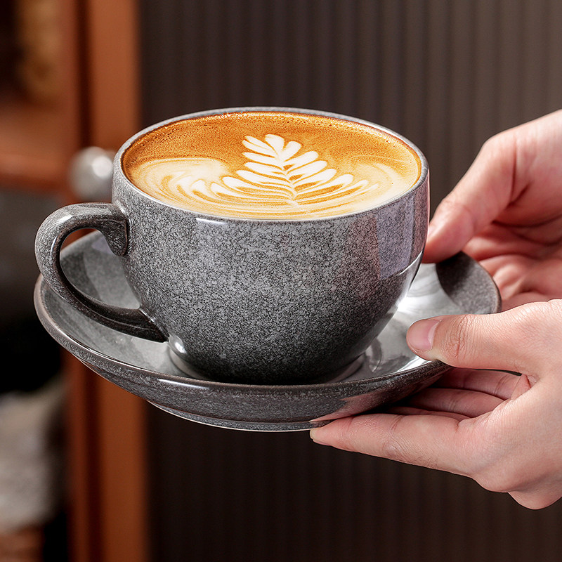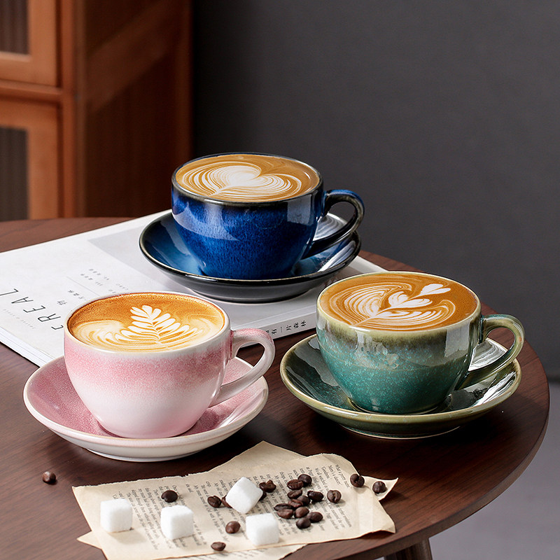 📚 瓷掌柜 窑变300ml陶瓷卡布奇诺日式复古拉花拿铁杯大容量咖啡杯碟
