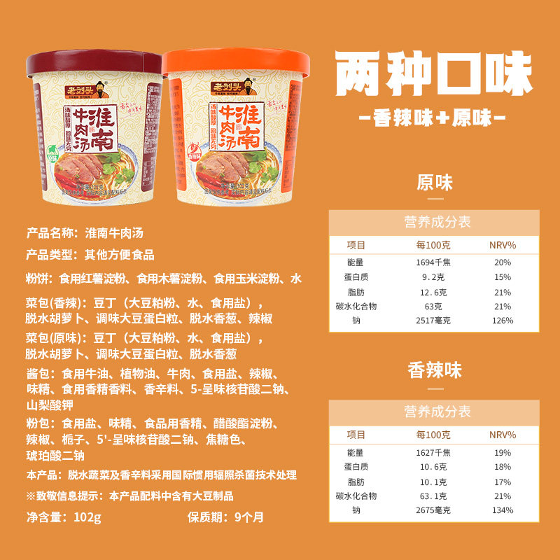 📚 老刘头淮南牛肉汤粉丝米线方便面泡面冲泡速食早餐宿舍夜宵桶装