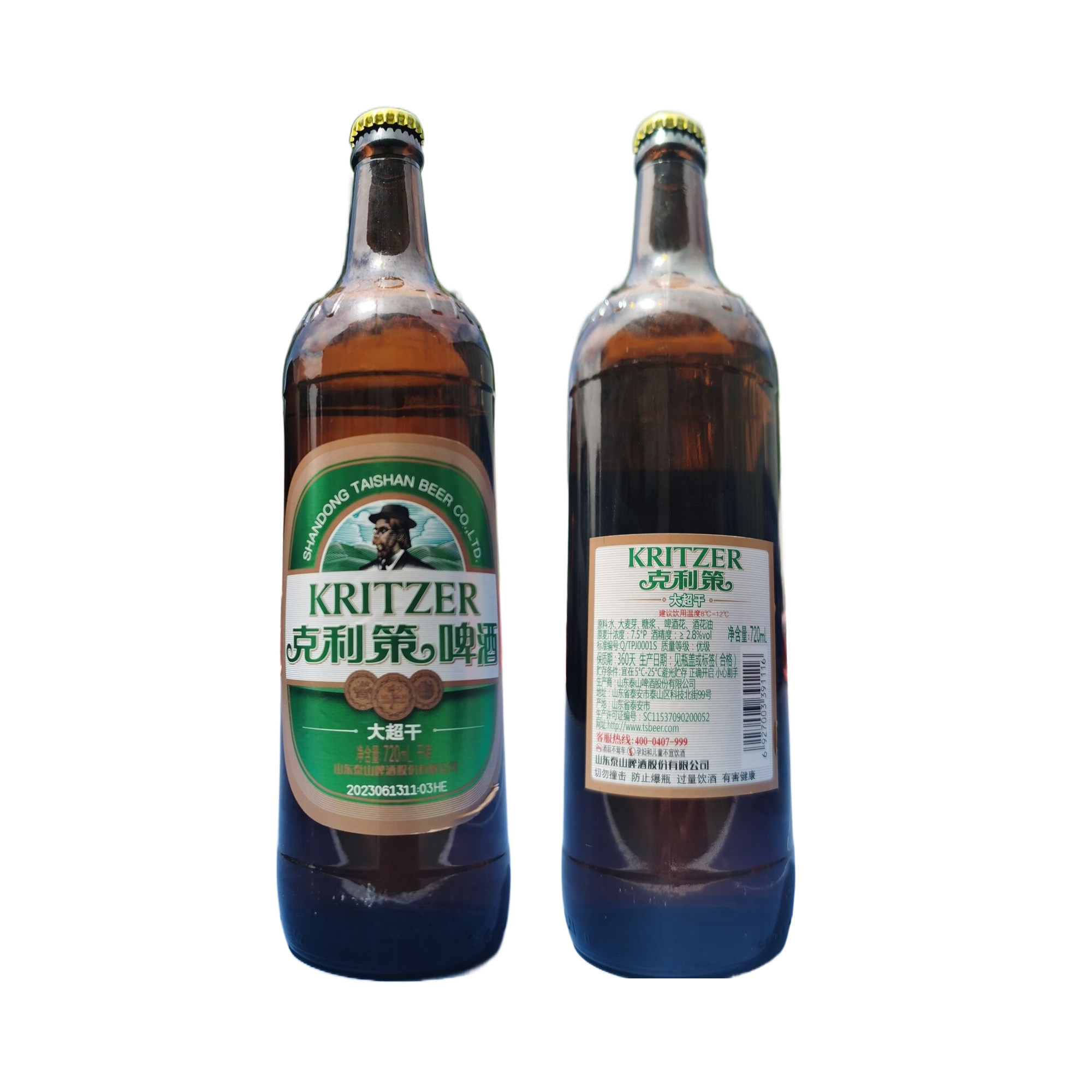 📚 泰山啤酒生产克利策大超干干啤经典720ml大瓶低脂低糖低热小麦芽