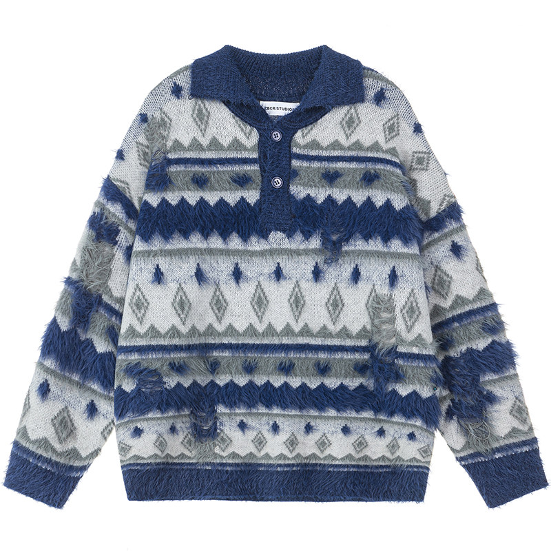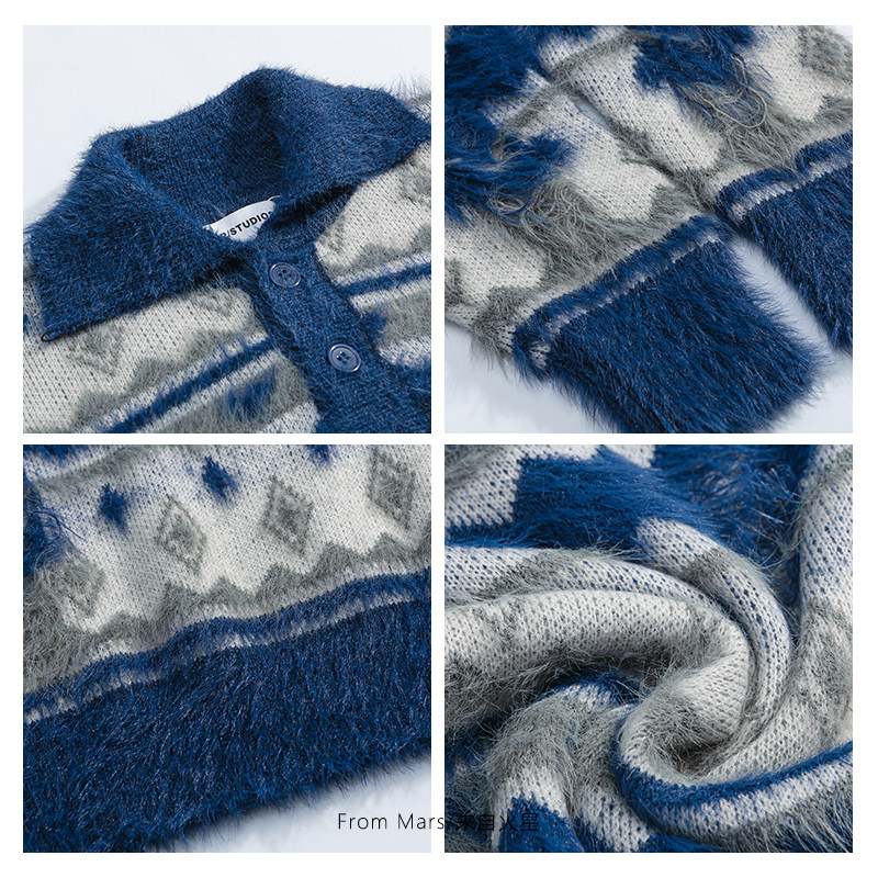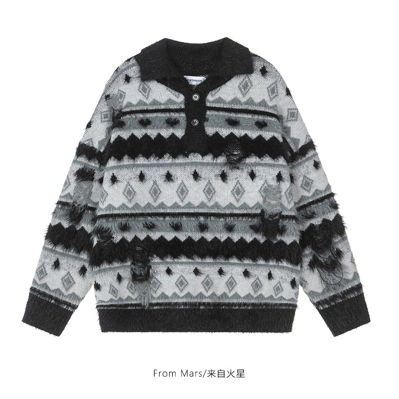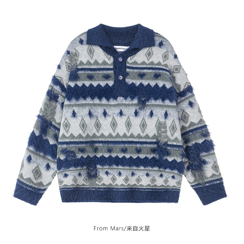 📚 From Mars 不动声色 美式复古撞色设计感翻领宽松慵懒百搭毛衣BF