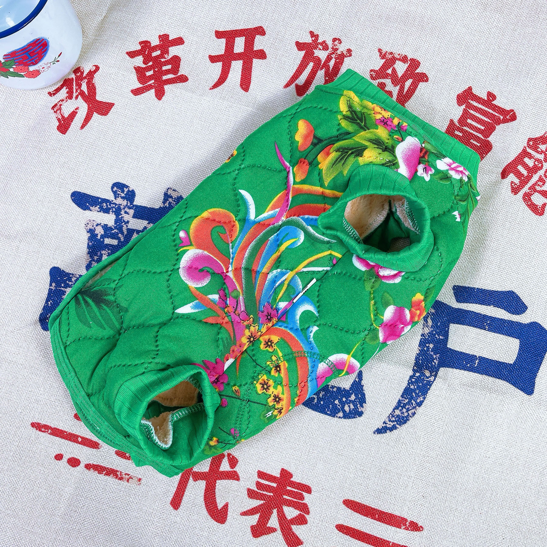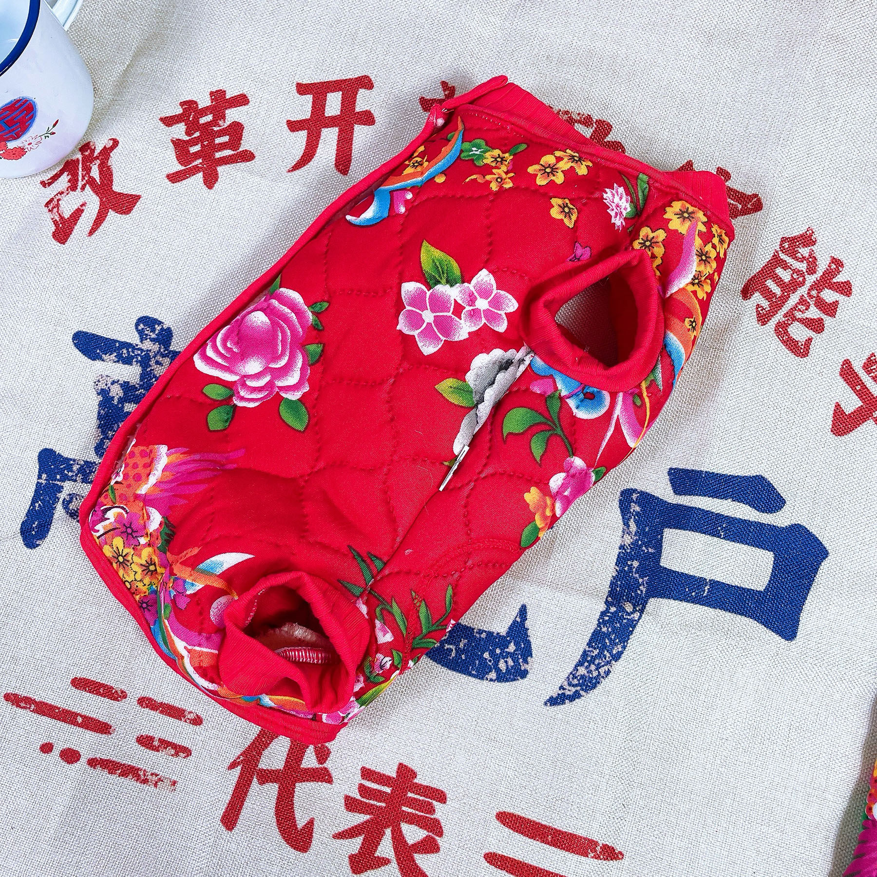 📚 东北风大花袄泰迪狗狗全包肚术后居家服三层加厚加绒秋冬保暖猫咪