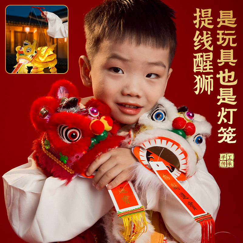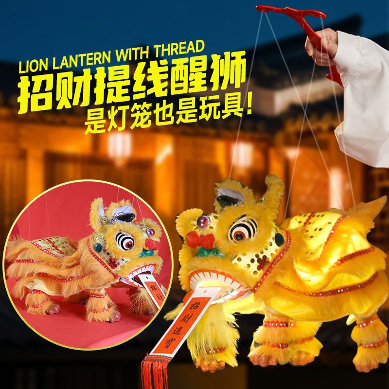 📚 新款龙年元宵节手提醒狮提线木偶灯笼挂饰新年儿童民间传统舞狮子