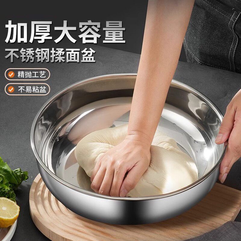 📚 家用醒面盆带盖发面用专用农村老式不锈钢和面带盖瓦盆厨房揉面