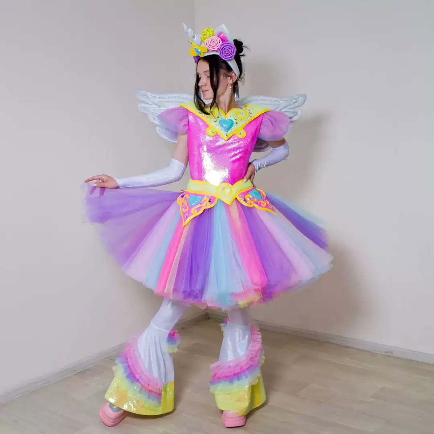 📚 独角兽魔法少女彩虹渐变蓬蓬裙带翅膀景区游乐园巡游表演服装奇幻