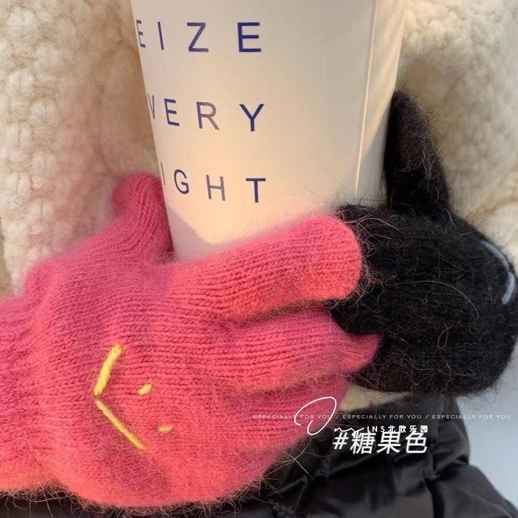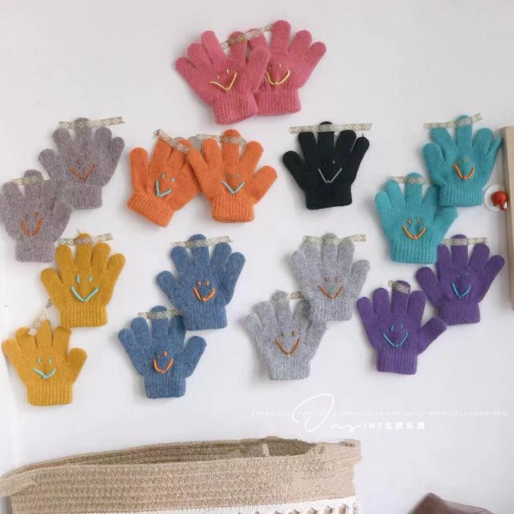 📚 2023冬季新款芝麻街韩国可爱儿童亲子款马卡龙糖果色笑脸羊绒手套