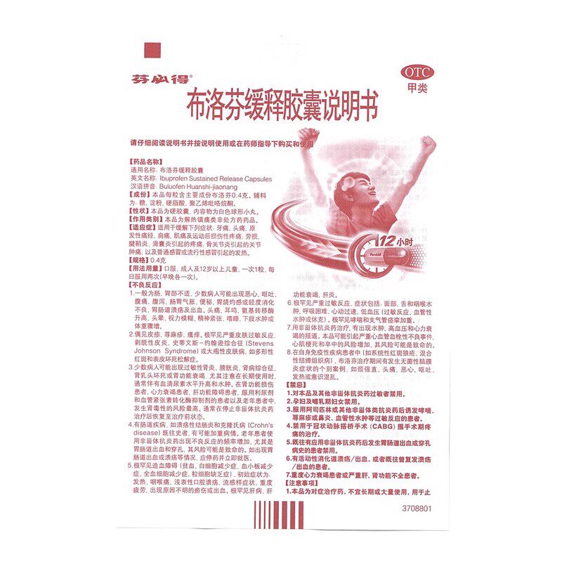 📚 芬必得布洛芬缓释胶囊0.4g头疼痛感冒药止痛药消炎经缓解退烧药