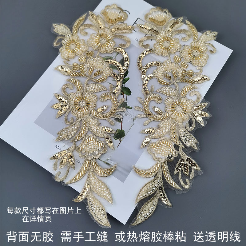 📚 重工珠绣时装旗袍婚纱礼服浅金色装饰贴花手缝巴洛克风格刺绣辅料
