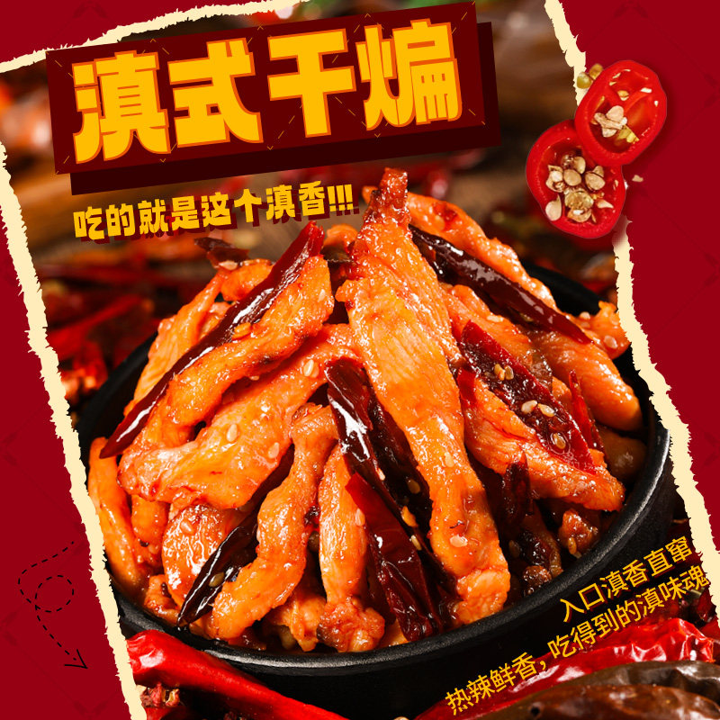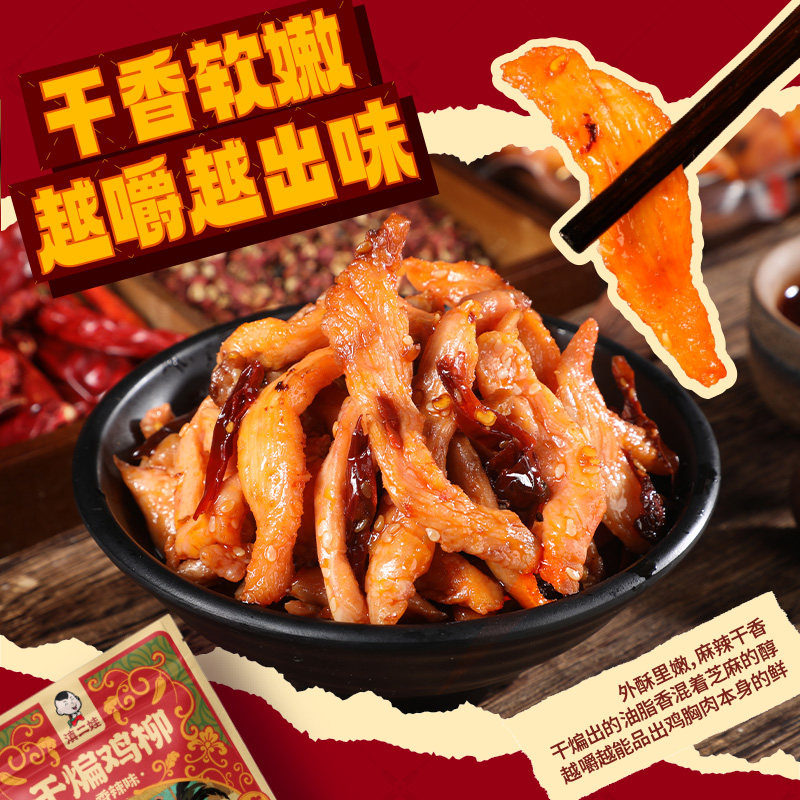 📚 滇二娃即食干煸鸡柳香辣鸡胸肉高蛋白休闲解馋小零食健身夜宵小吃