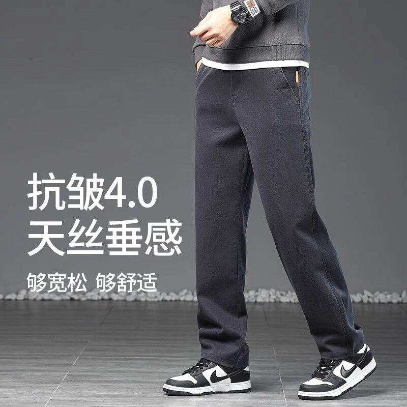 📚 啄木鸟2025秋冬加绒加厚新款天丝莱赛尔休闲裤男宽松直筒阔腿裤子