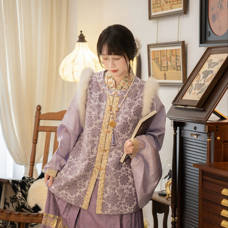 📚 琉鱼汉服 千金闺圆领袄百搭毛领昭君袄比甲仿漳绒华丽厚秋冬短袄