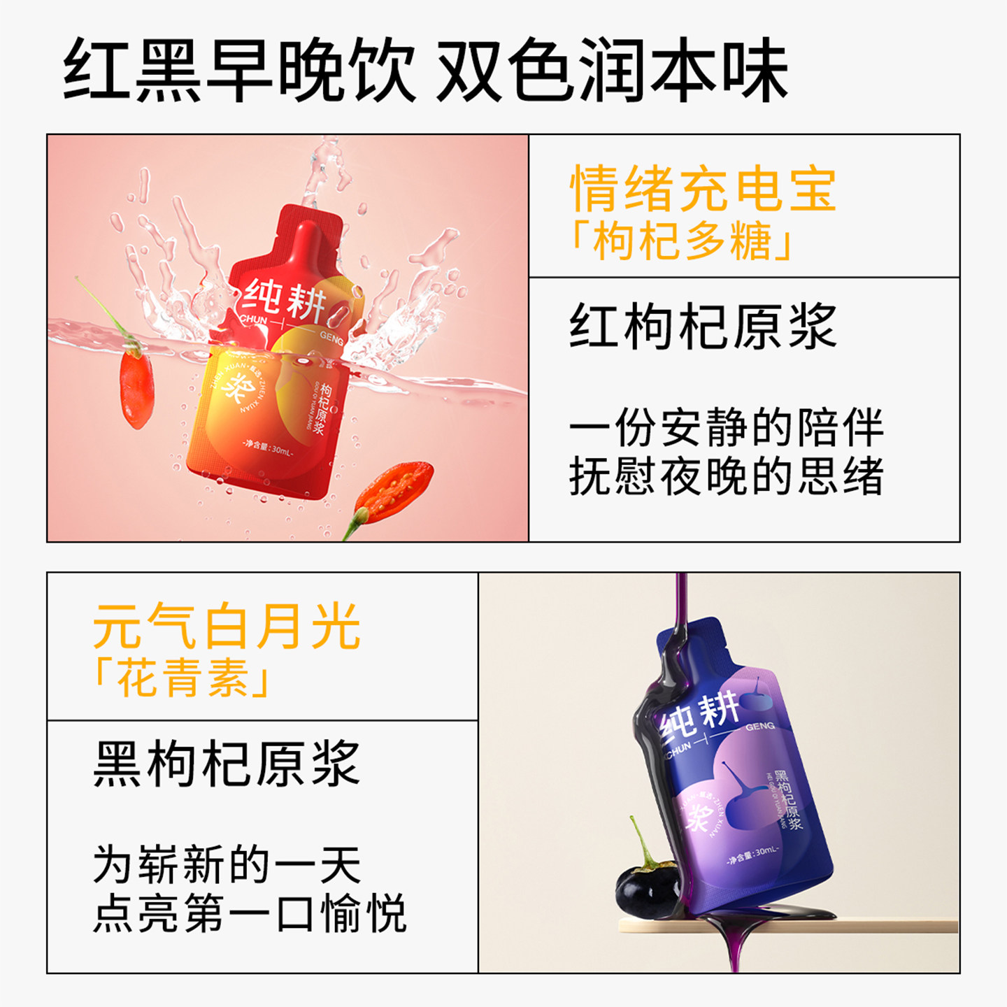 📚 【小拉泽专属】纯耕红黑枸杞原浆组合2.7L共90袋