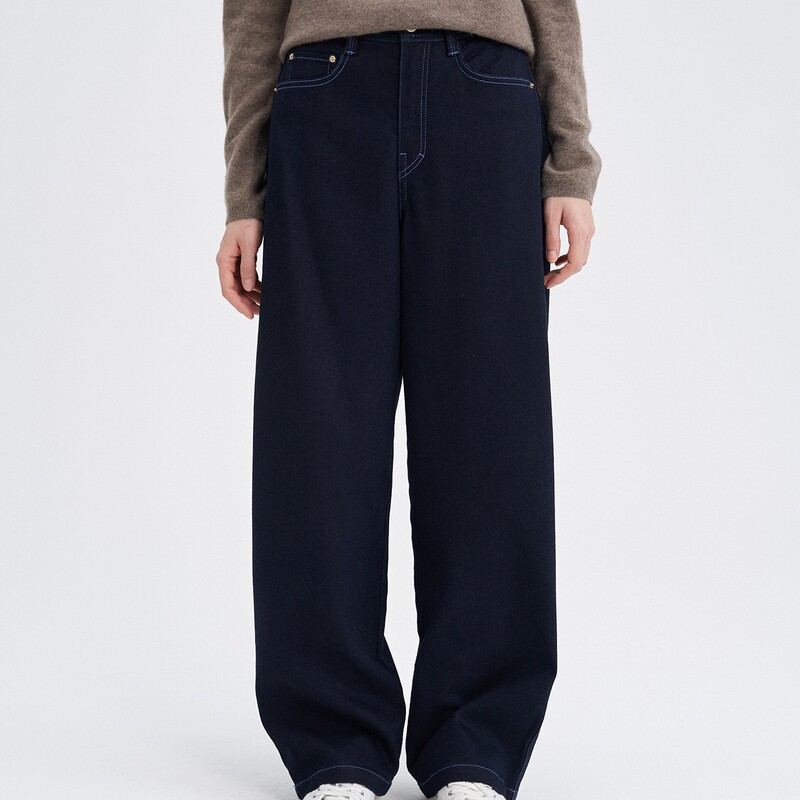 #新品 #素然Klee #冬日穿搭 #简约舒适 #起绒牛仔 #弯刀裤