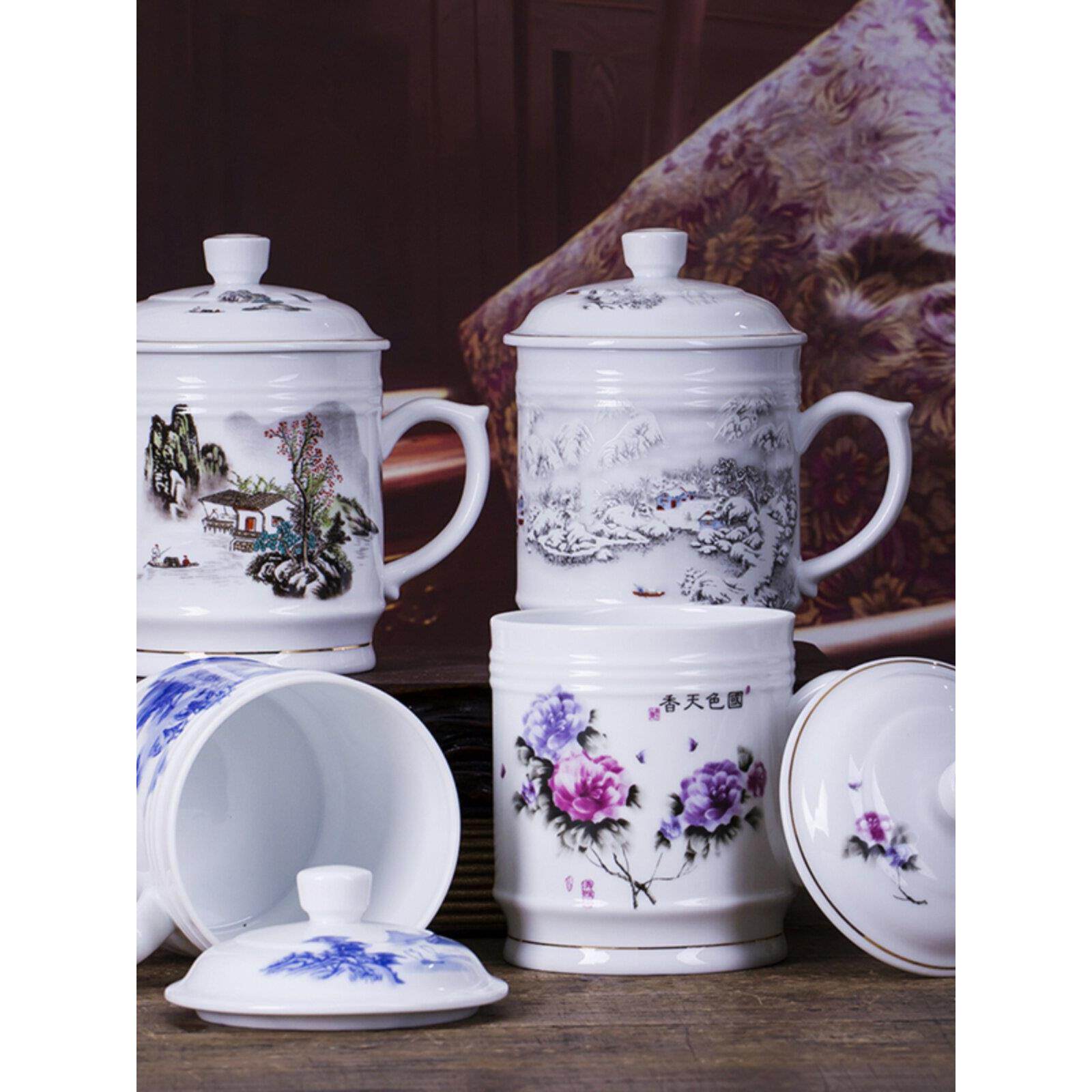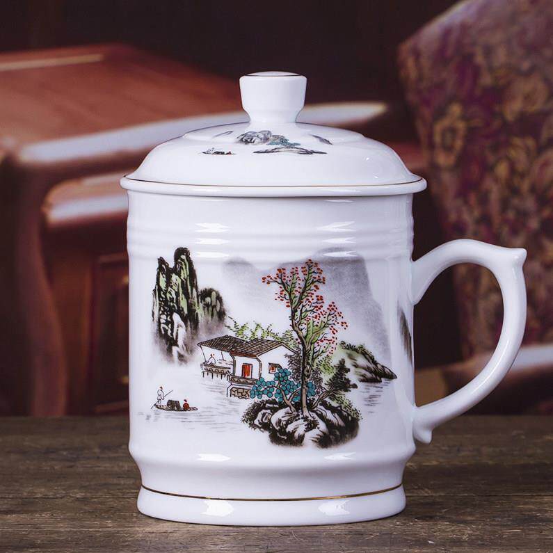 📚 景德镇陶瓷器杯子1000毫升水杯骨质瓷茶杯创意带盖超大号霸王杯1L