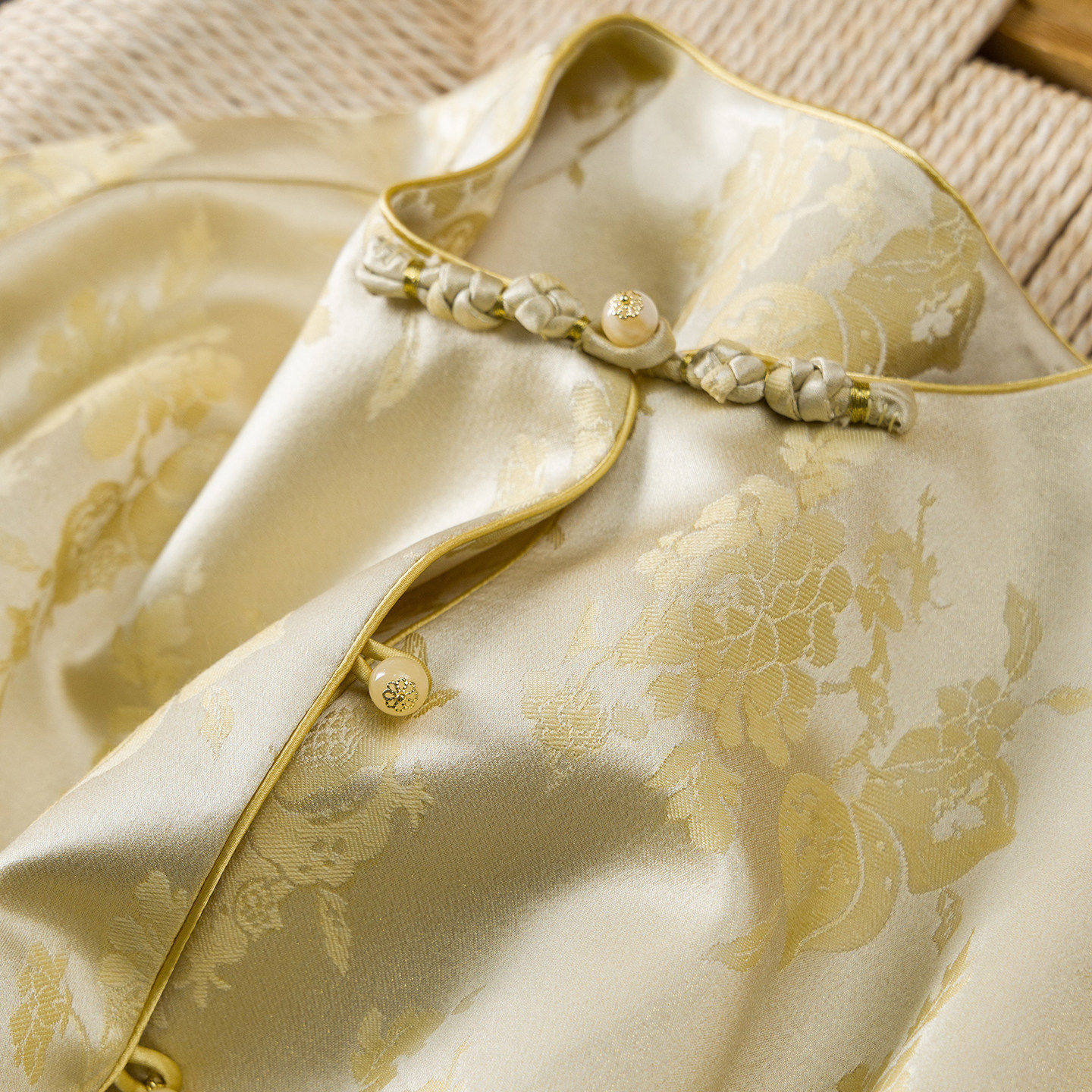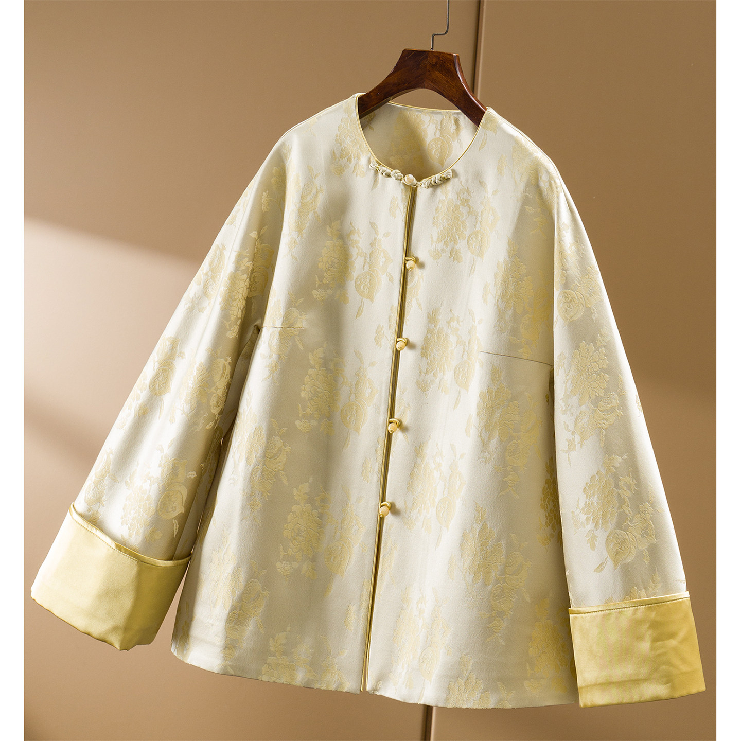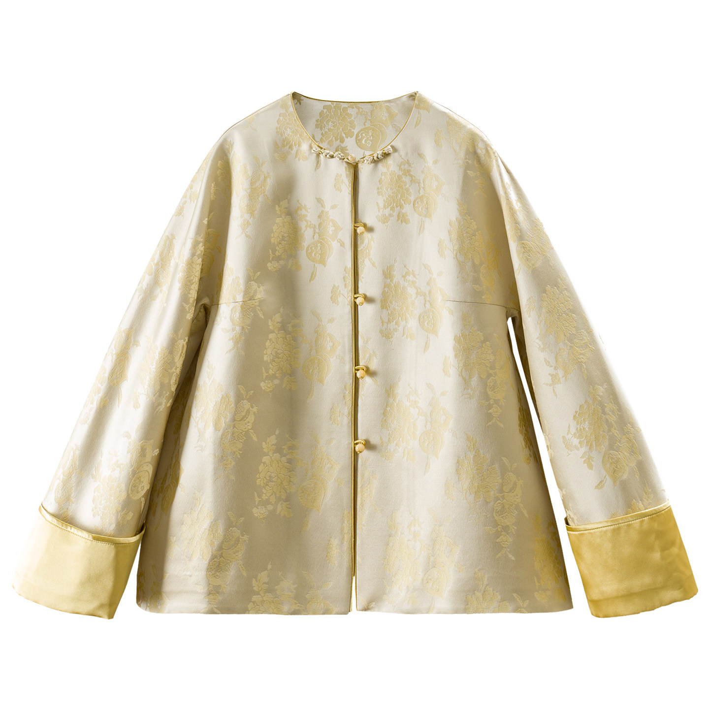 📚 H春上7号 雅韵天成 新中式轻奢真丝羊毛圆领金丝提花外套女24K3