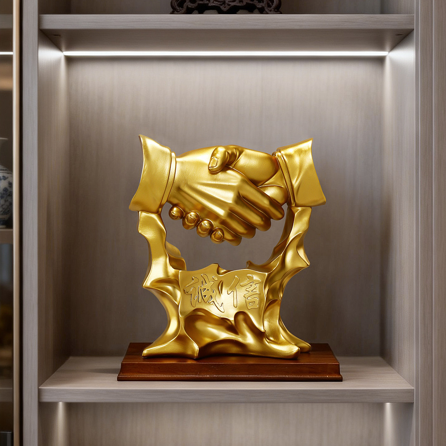 📚 诚信握手摆件合作共赢老板办公室酒柜装饰品公司开店开业升职礼物