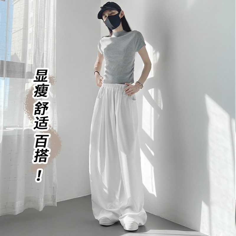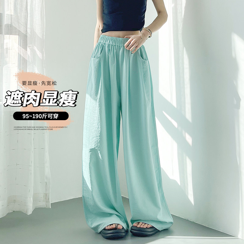 📚 大码宽松夏季阔腿裤女胖mm显瘦200斤高腰垂感轻薄透气冰丝山本裤
