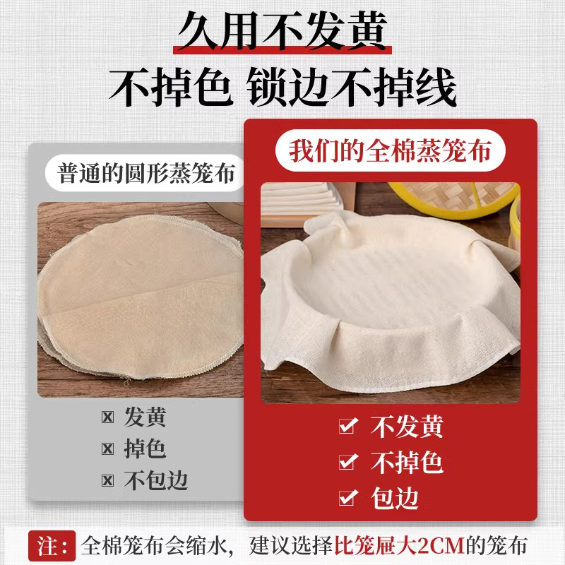 📚 蒸笼布不粘家用食品级纯棉纱布棉大屉布笼布蒸包子蒸笼垫过滤布