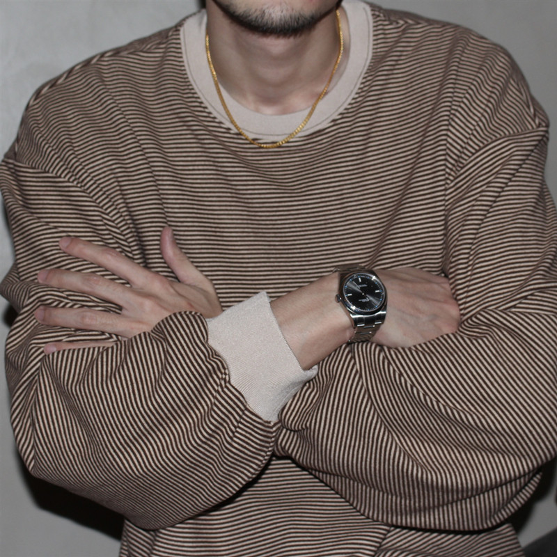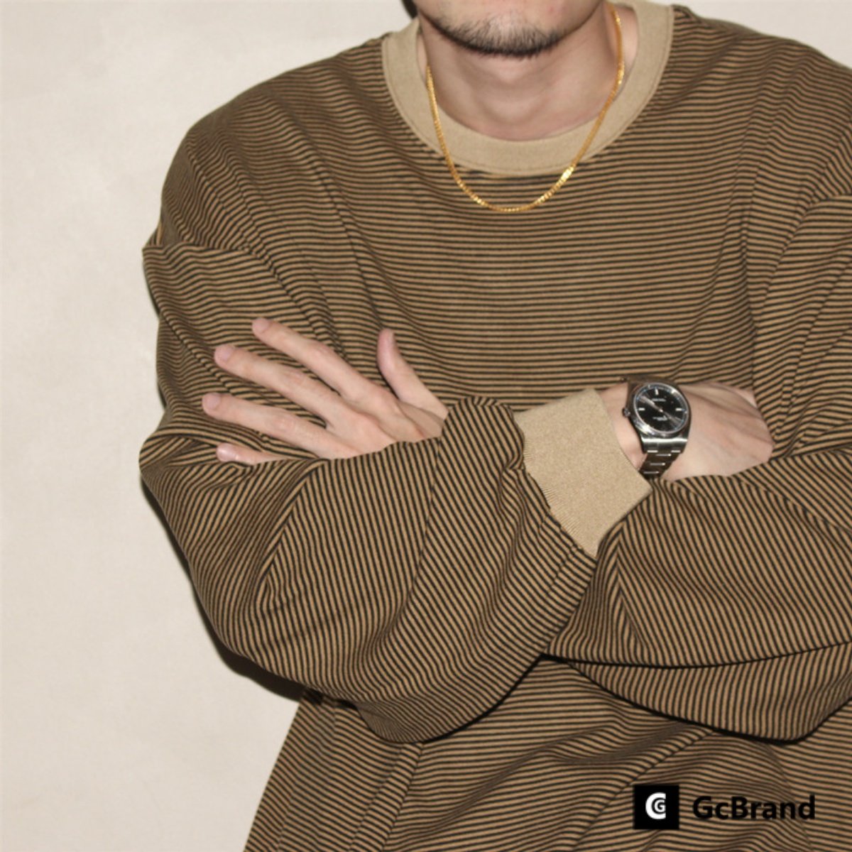 📚 GcBrand AW24 复古主题元素 拼色条纹设计 男女圆领款柔软长袖T恤