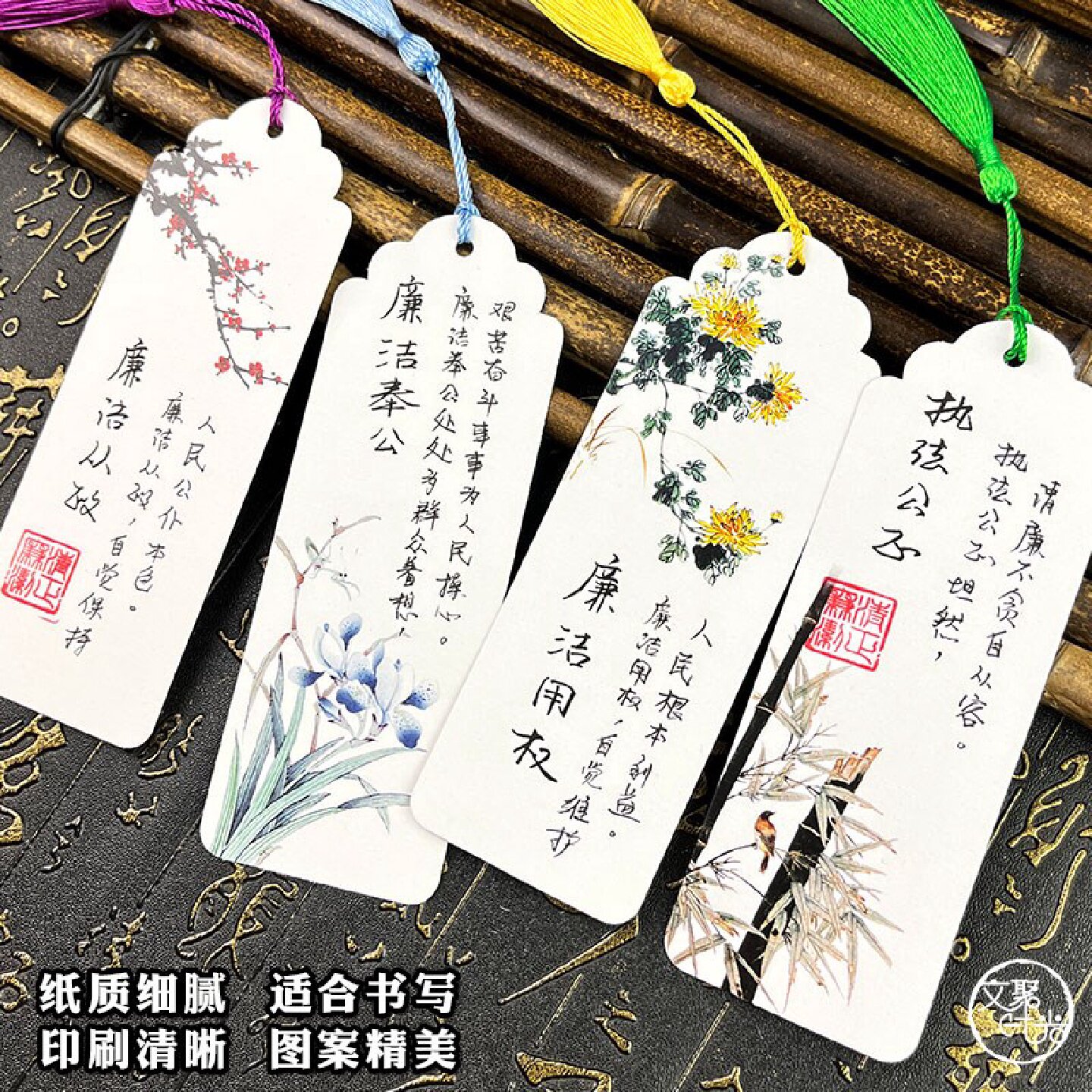 📚 廉政书签空白廉洁卡片定制来图定做古典中国风清廉家风书签穗子