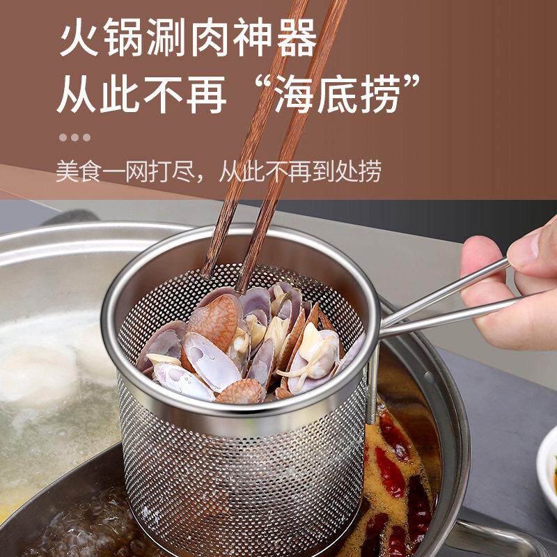 📚 火锅漏勺挂边脑花神器煮面漏网篮烫猪脑容器漏斗涮肉过滤网带挂钩