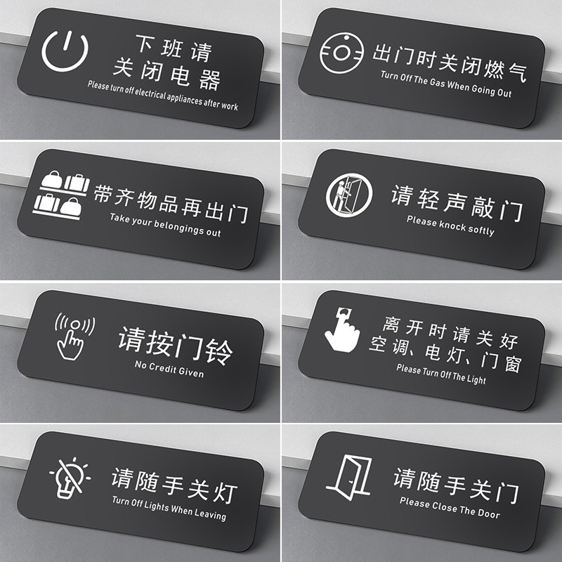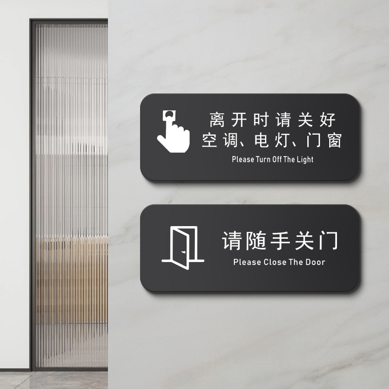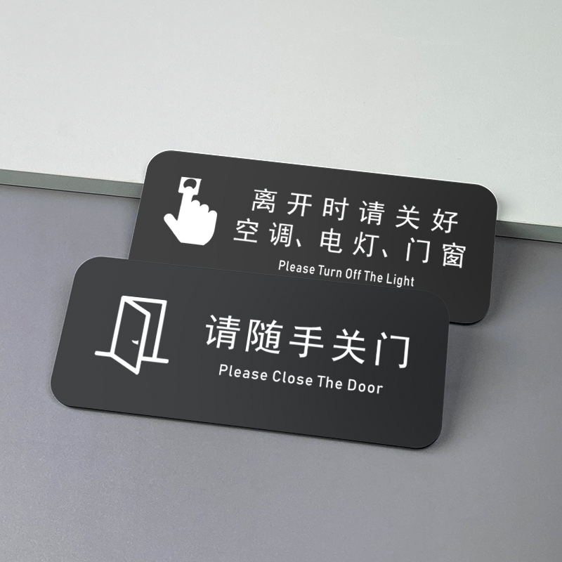 📚 亚克力请随手关门标牌贴节约用电关灯指示牌标识牌离开时关好门窗空调标示牌标志牌个性创意门牌提示牌定制作