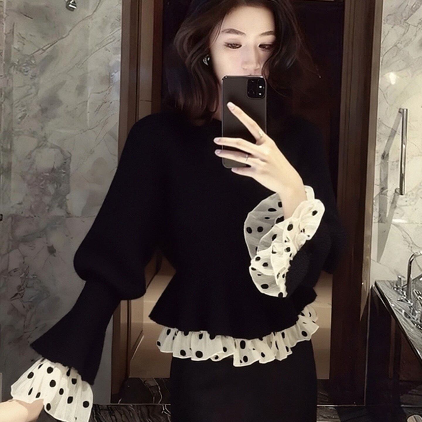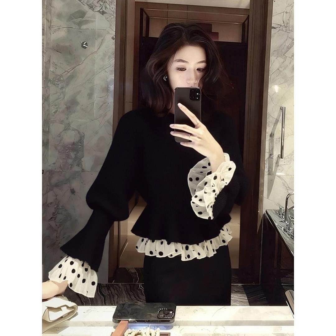 📚 超好看独特漂亮黑色小香风韩系冬装短款高级感绝美轻奢内搭上衣