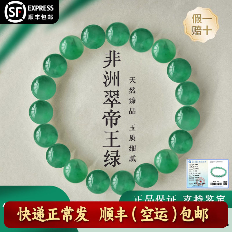 📚 天然非洲翠手串独龙玉冰种玉石带绿飘花圆串珠子单圈手链手串散珠