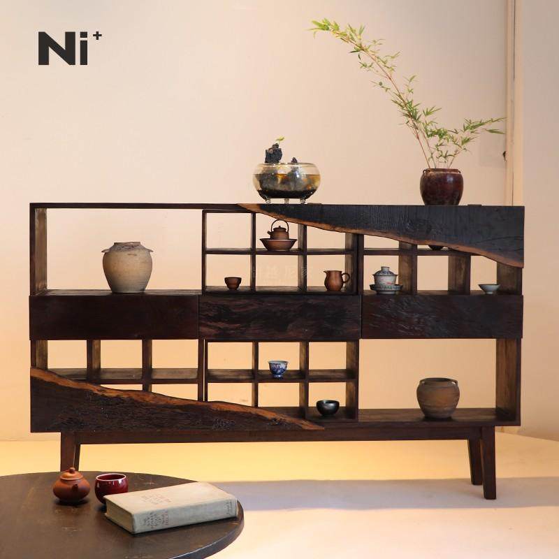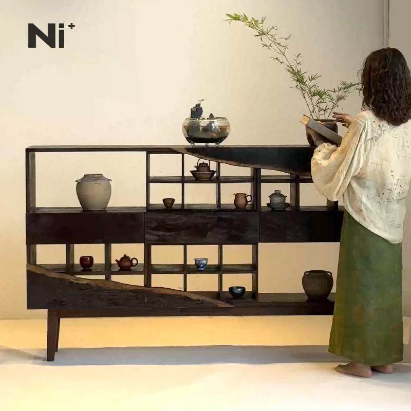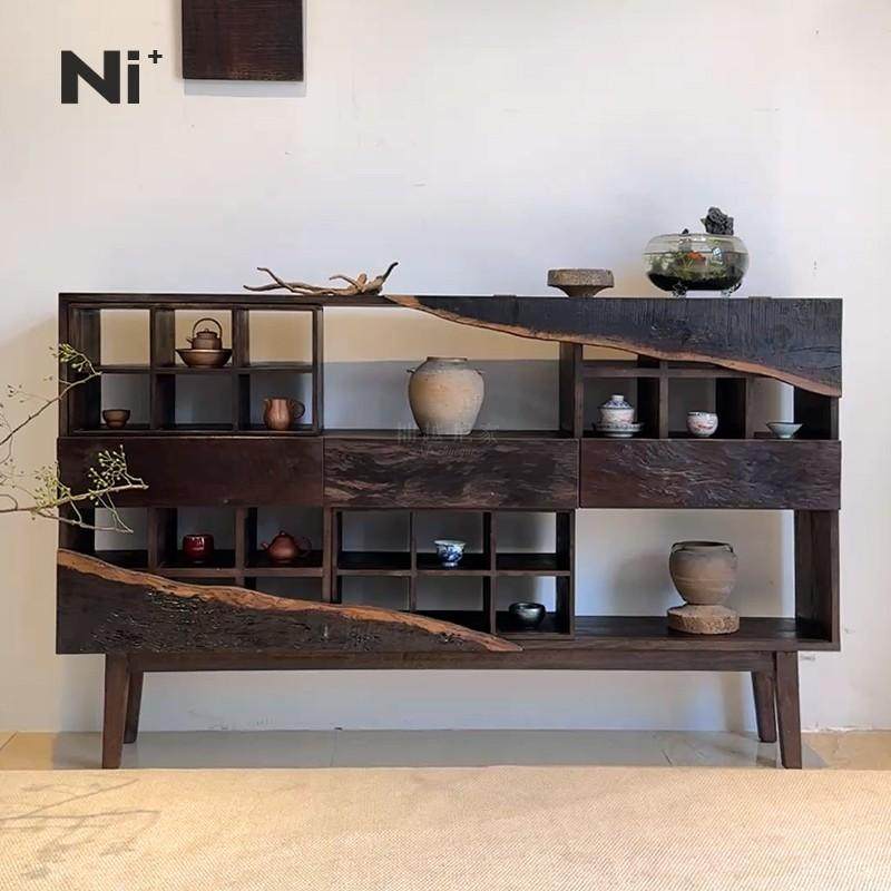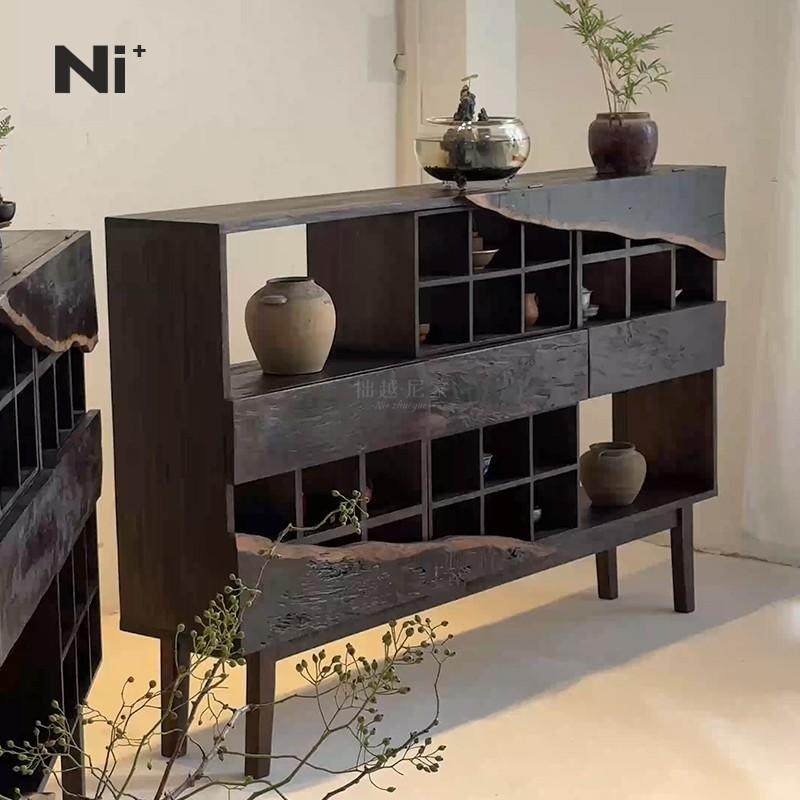 📚 Ni尼家侘寂风边柜实木茶叶柜茶室柜子茶杯架博古架置物架复古民宿