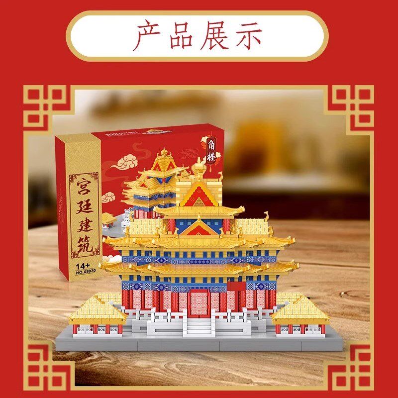 📚 2024新款积木千年隼角楼榫卯建筑模型国潮成人高难度男孩拼装玩具