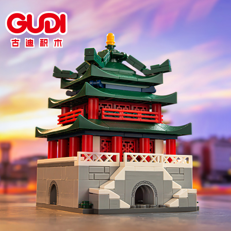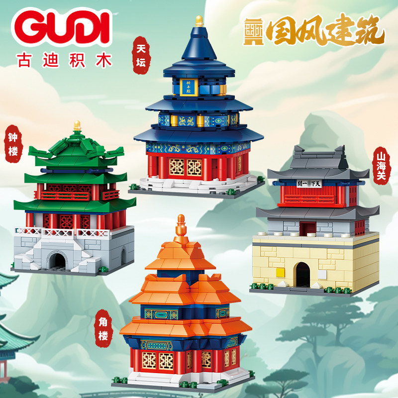 📚 古迪积木国风建筑角楼天坛山海关钟楼组装模型儿童拼装积木玩具屋