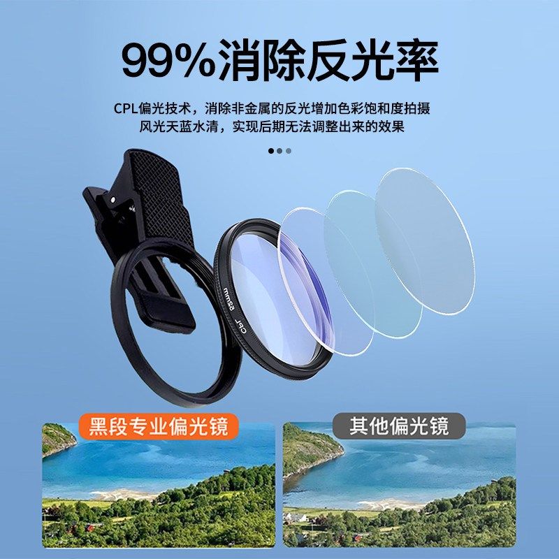 📚 黑段手机偏振镜高清镀膜偏光消除水面玻璃反光2025款滤镜外接摄影