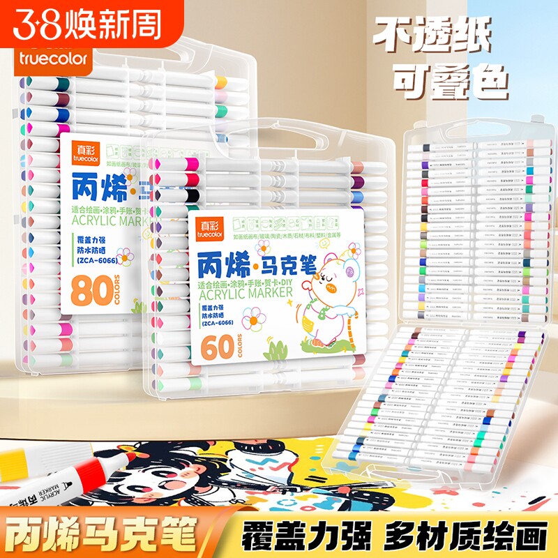 📚 真彩24色丙烯马克笔小学生专用不透色可叠色美术专用儿童无毒可水洗水彩笔幼儿园笔芯彩色颜色涂色涂鸦画画笔