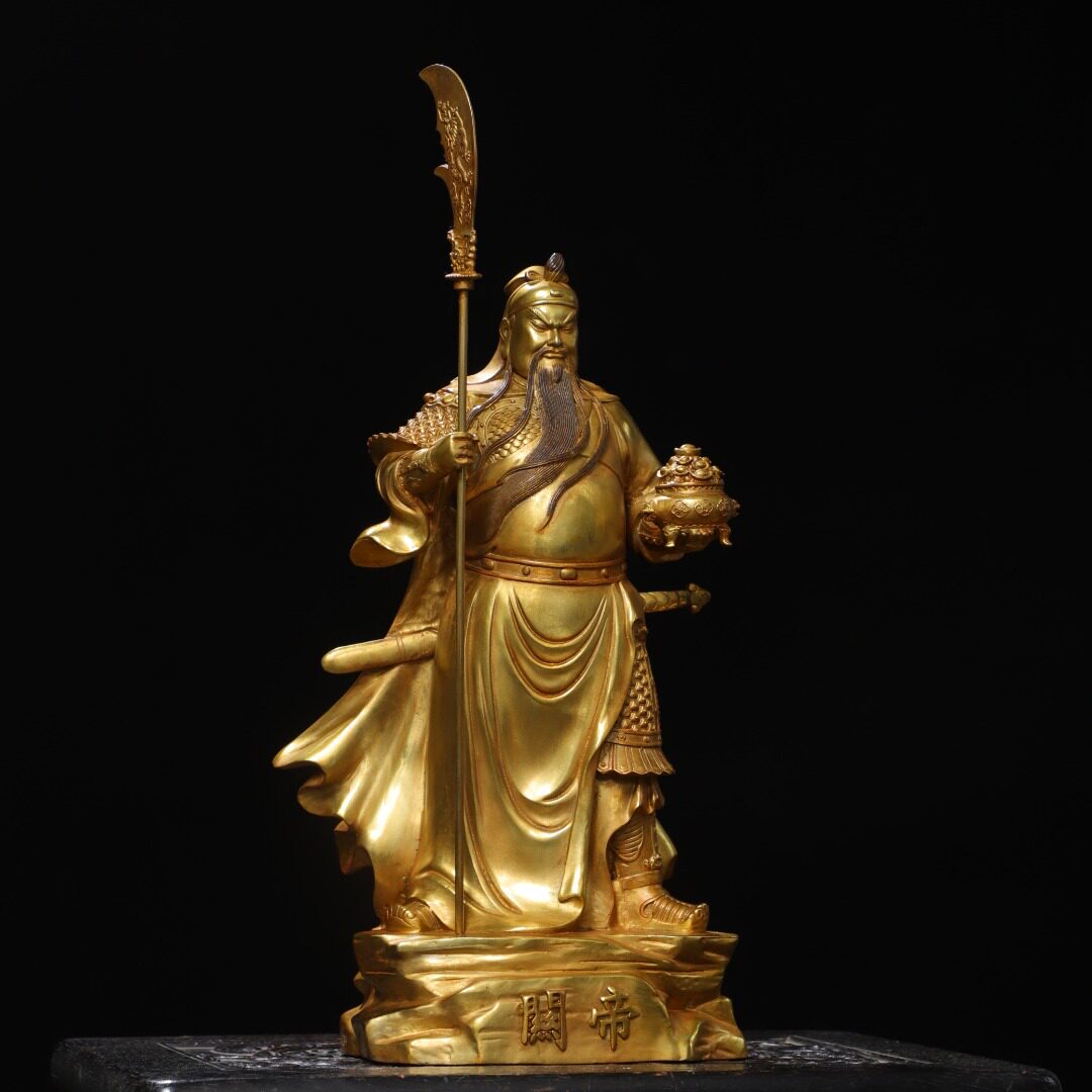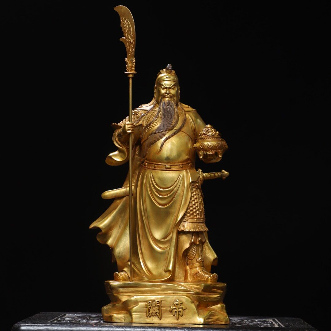 📚 纯铜托宝关公摆件立刀关公托聚宝盆关公眯眼关公闭眼关二爷铜神像
